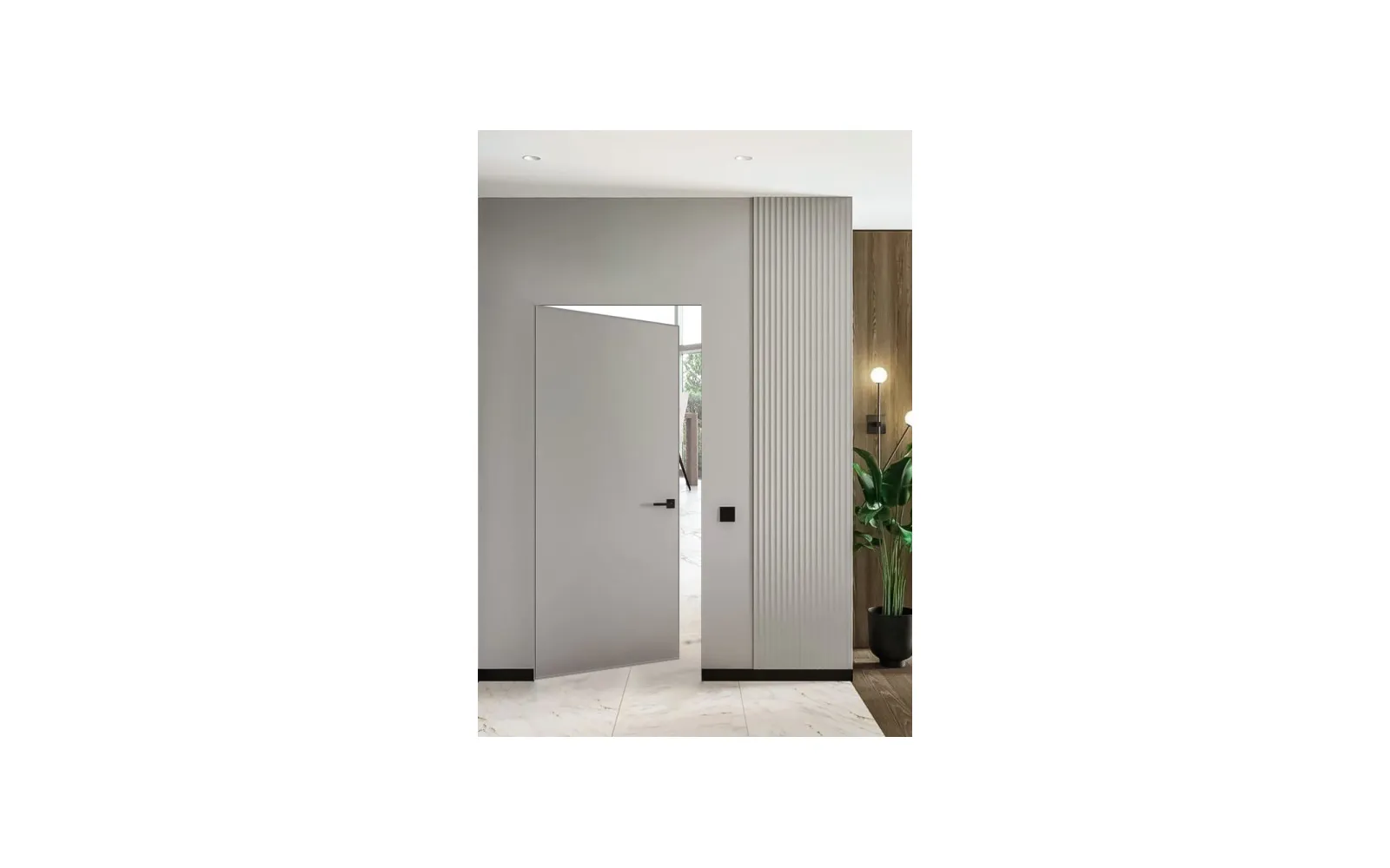 Скрытая система монтажа: дверь полностью скрывается в стене, создавая эффект «исчезающей» двери.