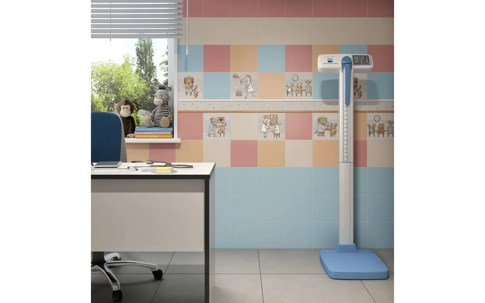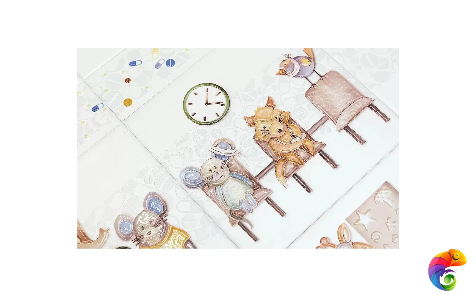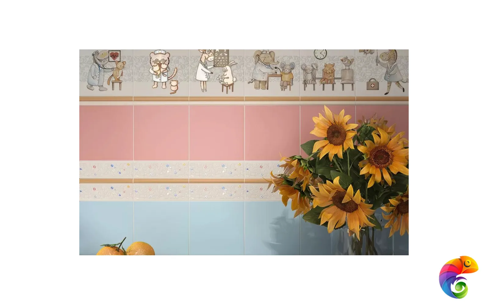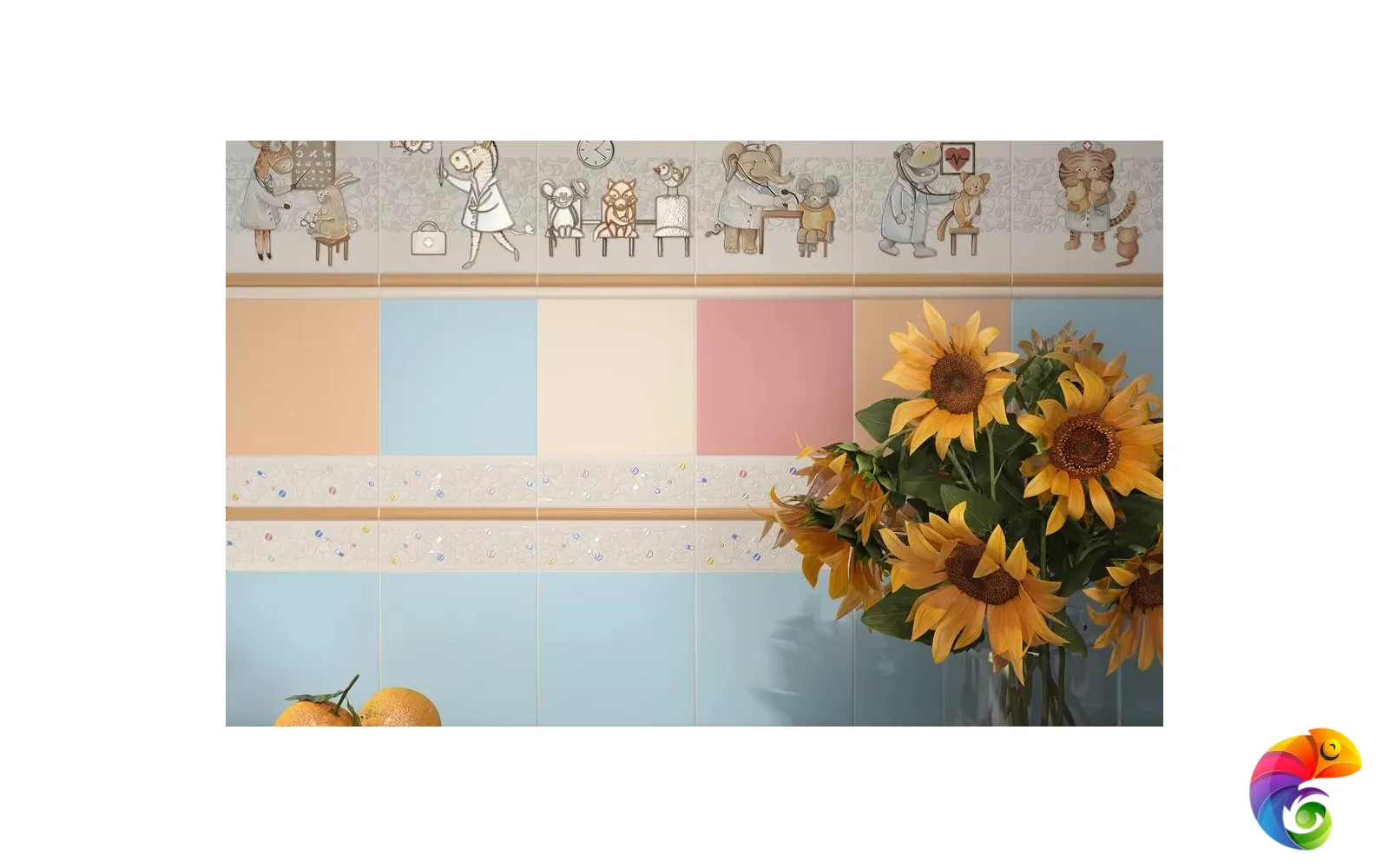 Шесть рисованных сюжетов отлично дополнят фоновую плитку в семейной клинике или детском медучреждении. Для придания изображениям дополнительного блеска и объёма использован прозрачный состав, создающий поверх рисунка толстый слой глазури.
