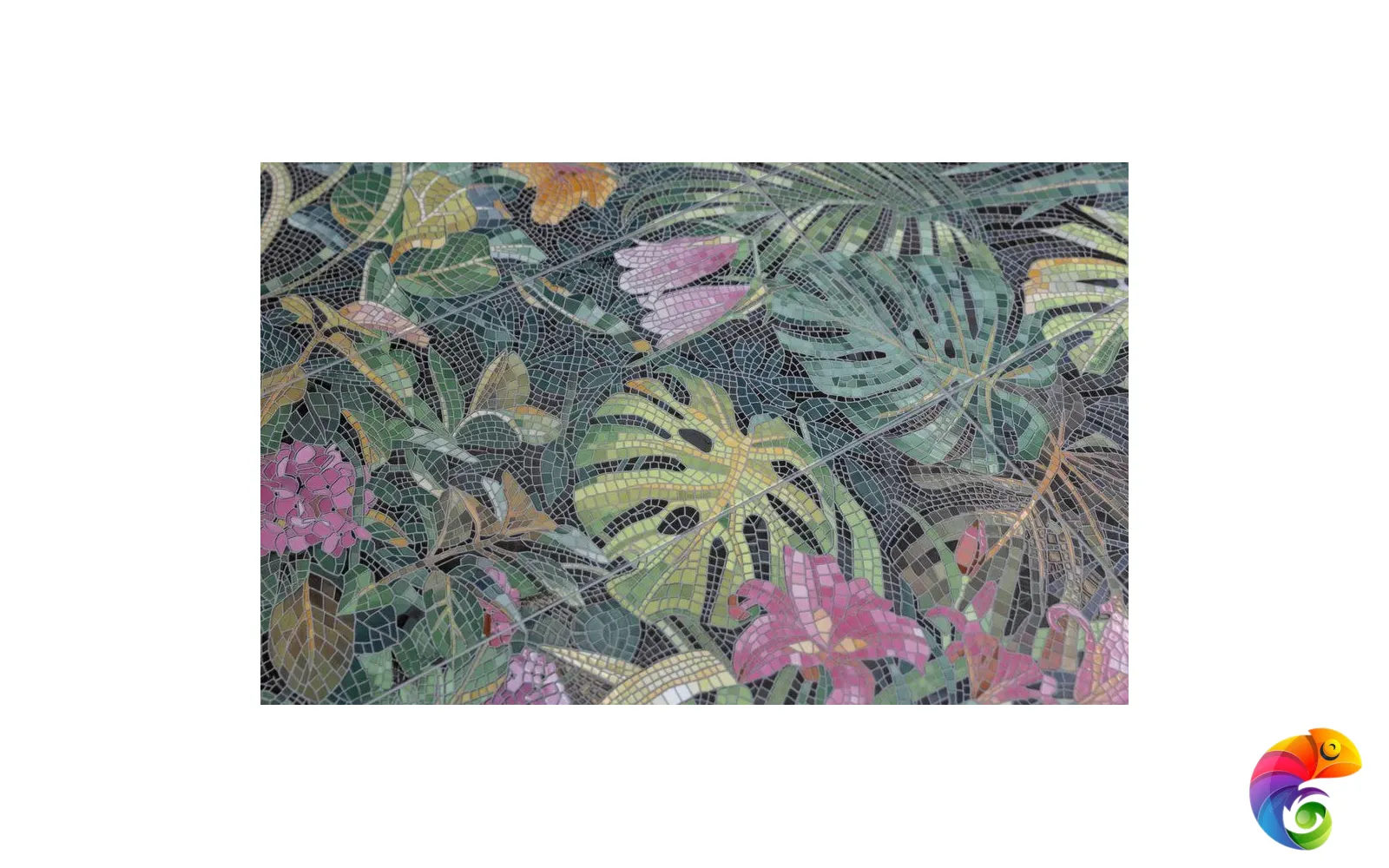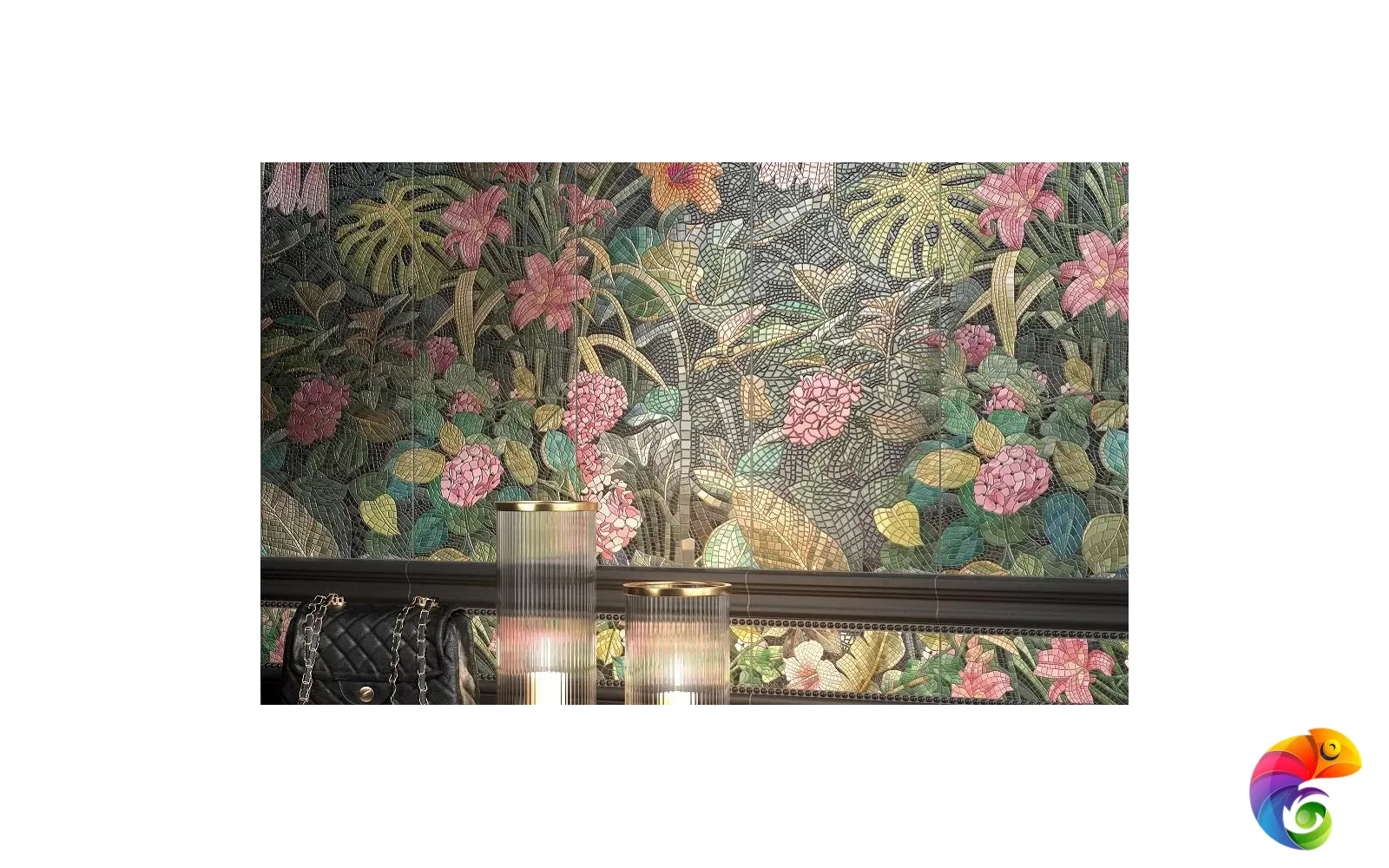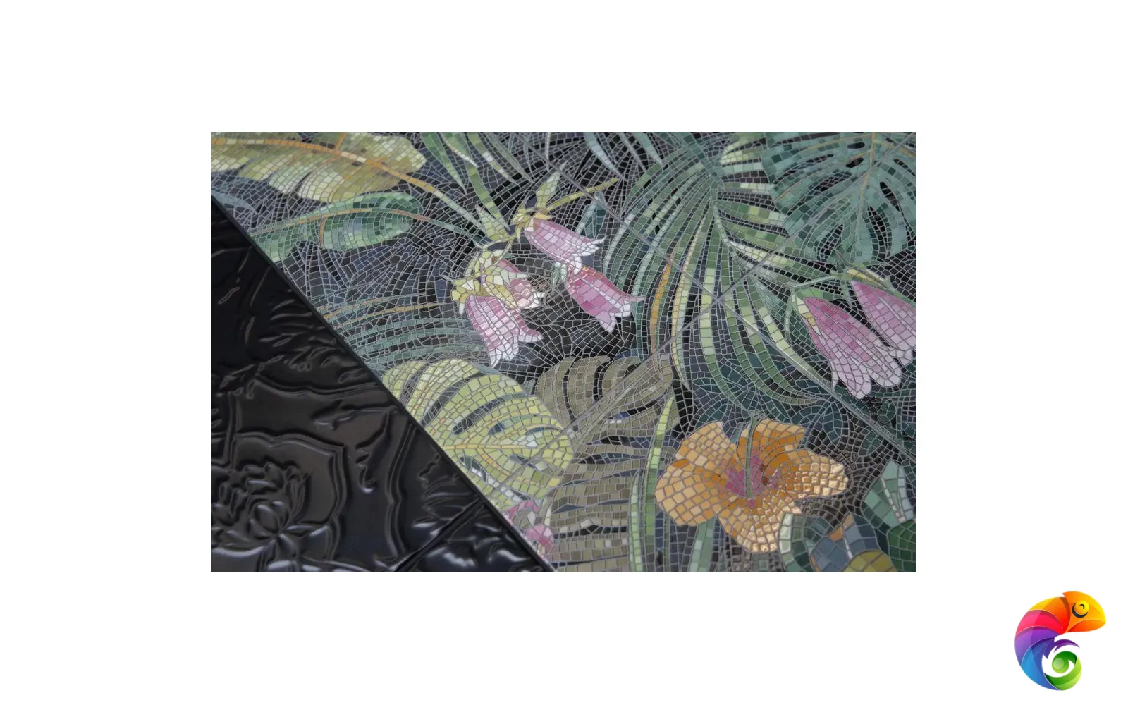 Эксклюзивное предложение серии «Альвао» — флористическое панно из плитки с эффектом художественной мозаики. Россыпь дивных цветов на фоне пышной зелени образуют панно из шести частей 20×50 см. Рисунок составлен таким образом, что верхний и правый края можно продолжить и сделать панно любого необходимого размера. Дополнить отделку предлагается белой либо черной матовой плиткой. Фон можно выбрать гладким или с орнаментальной структурой флористического дизайна.