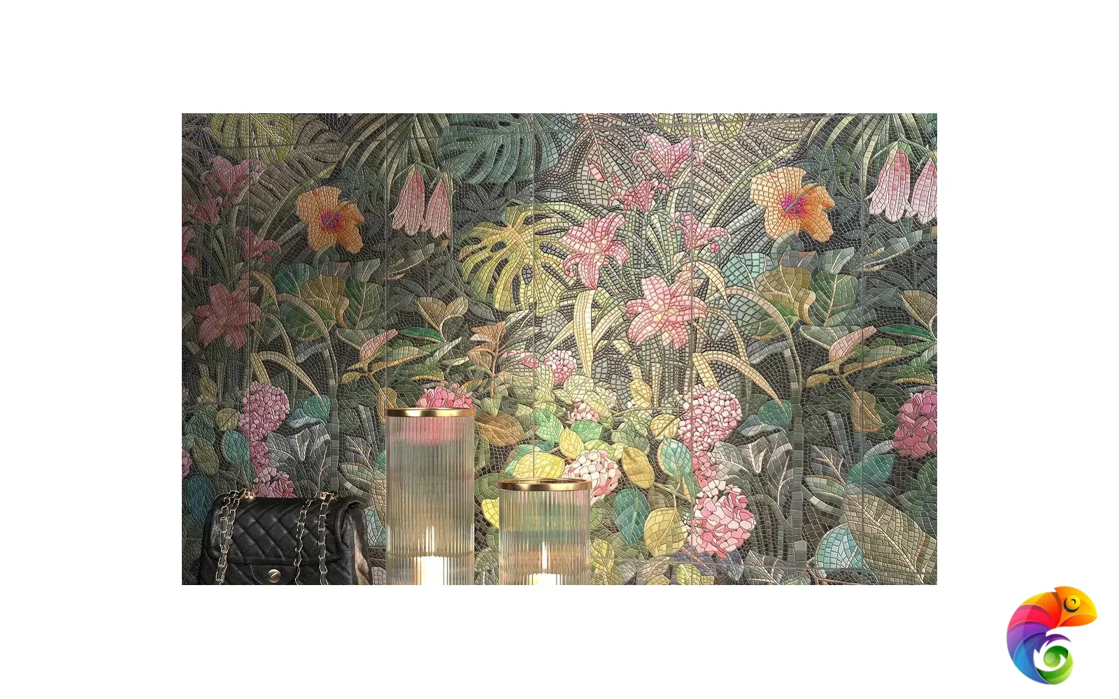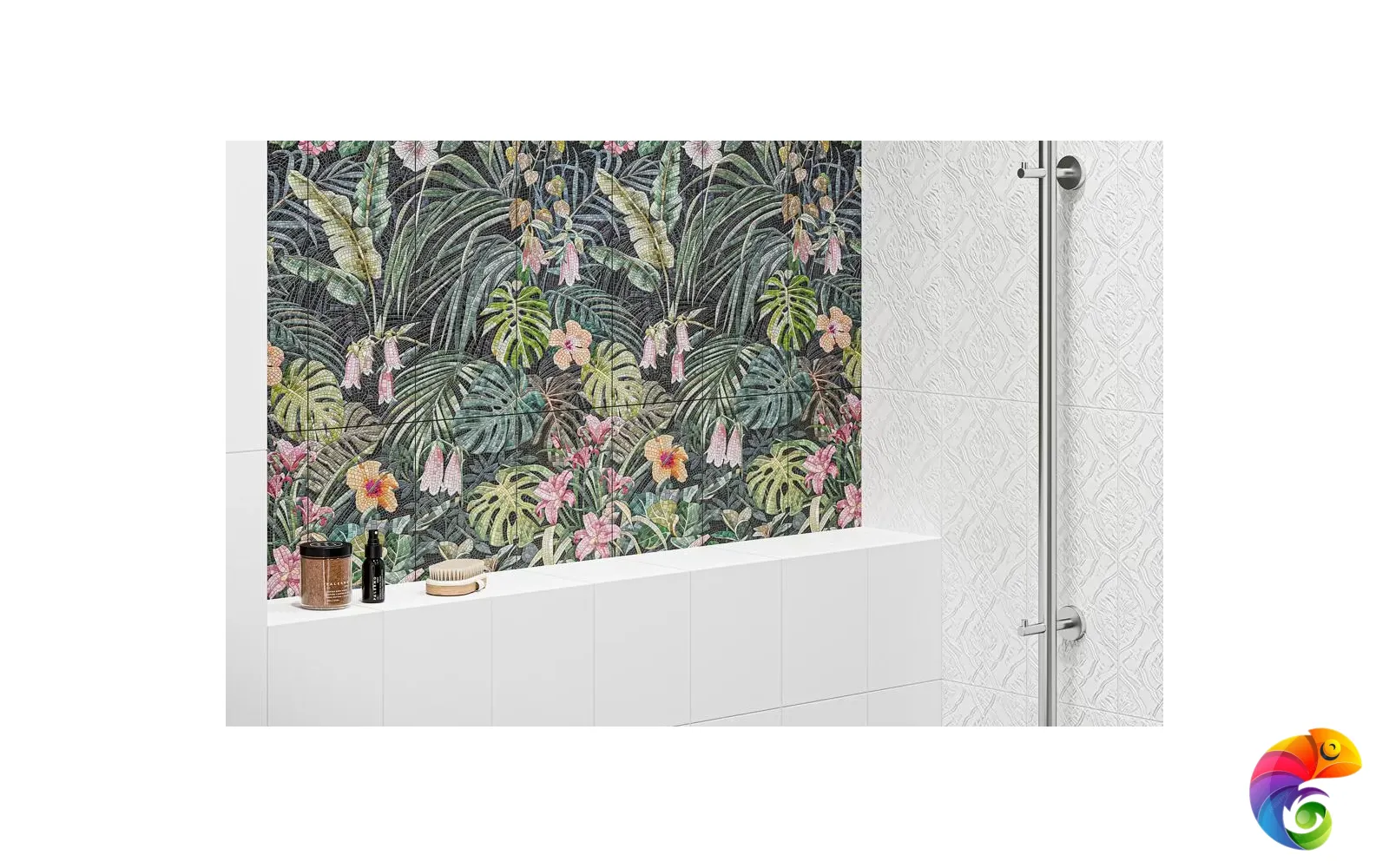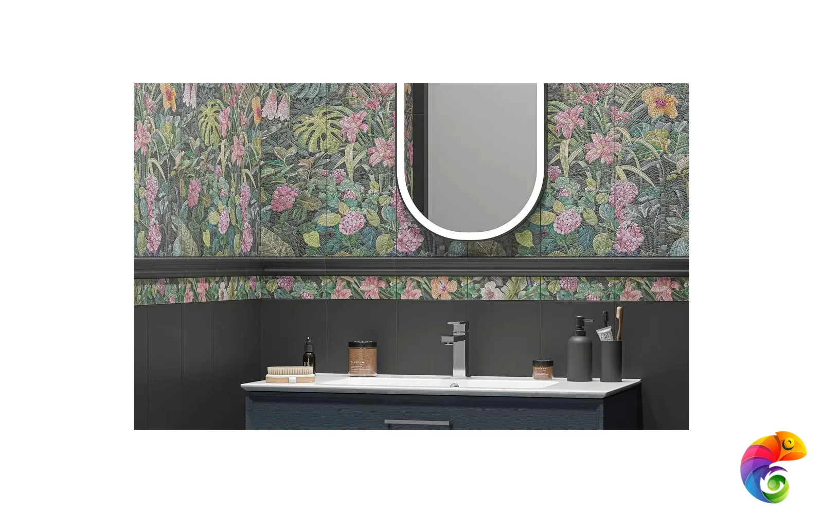 Плитка 20×50 см серии «Альвао» подразумевает бесшовную укладку, дополняющую реалистичность восприятия цветочного рисунка. Благодаря лёгкому глянцу керамической плитки под мозаику свет, особенно направленный, рождает эффект блестящей поверхности. Бордюр с цветочным рисунком, точь-в-точь как на панно из плитки, позволит создать нужные акценты: например, оформить зеркало, дополнительно выделить край ванны или мебели. Цветные бордюры и различные оттенки бордюра-бисера открывают новые горизонты в декорировании помещения.