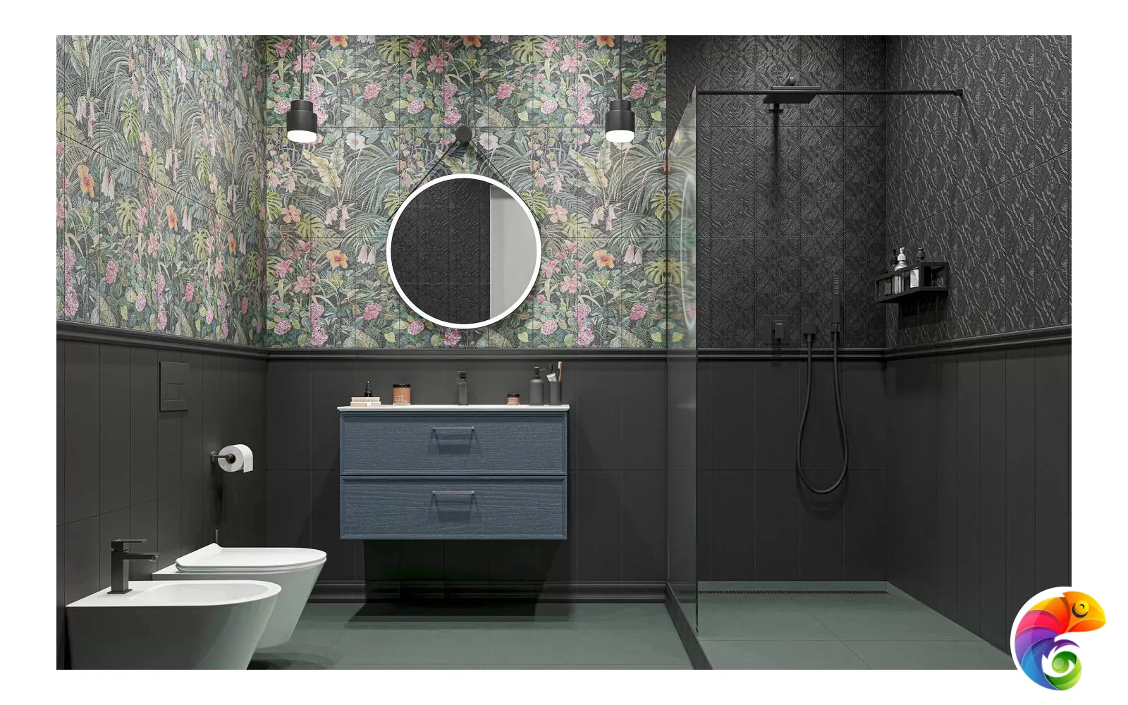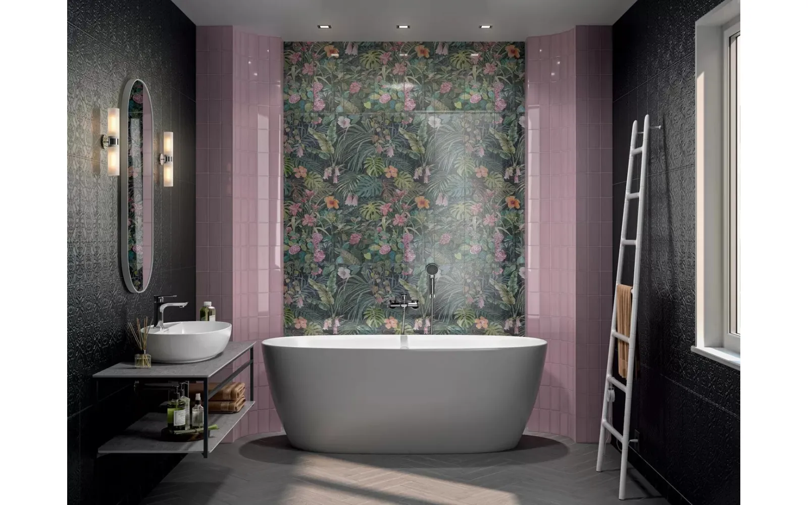 В качестве компаньонов к флористическому панно предлагается строгая белая и черная матовая плитка. Если мы говорим о панно в ванной, то рядом с ним приживется санкерамика и мебель в современной стилистике, однотонные полотенца, светильники простых форм.