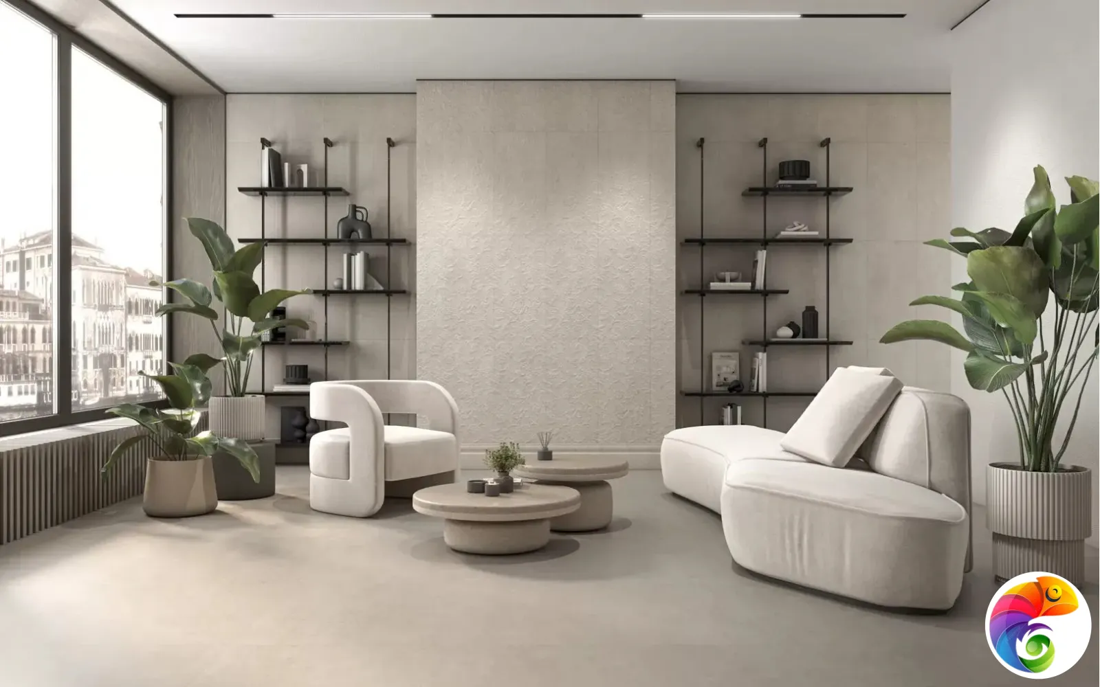 Керамические материалы «Догана» в интерьере можно удачно сочетать с координированной напольной плиткой 80×80 из серии «Про Догана».
