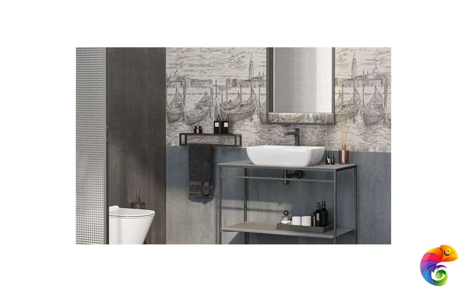 Также керамическую композицию обогатит панно с венецианским сюжетом, техника исполнения которого напоминает гравюру. Ведь филигранная работа с металлом — одно из тех ремёсел, которые веками развивались в Венеции, и плитка достоверно передаёт красоту гравировки.
