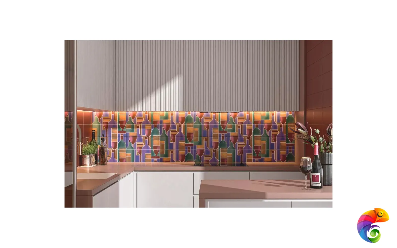 Впрочем, эффектная декорация подойдёт и для домашнего использования. Например, как плитка для фартука в интерьере яркой кухни в современном стиле или акцентной стены в домашнем баре загородного дома. В качестве компаньона к панно дизайнеры KERAMA MARAZZI рекомендуют использовать керамическую плитку для стен из серии «Бельканто» нейтрального белого цвета и/или насыщенного цвета бордо.