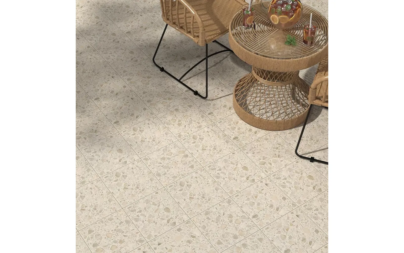 В серии воспроизведён способ укладки, который в Италии называют «кассетонато». Тонкие деревянные планки образуют сетку, в ячейки которой заливается раствор с добавлением каменной крошки. Именно такой эффект создают модная графика базы и декоративные бордюры.