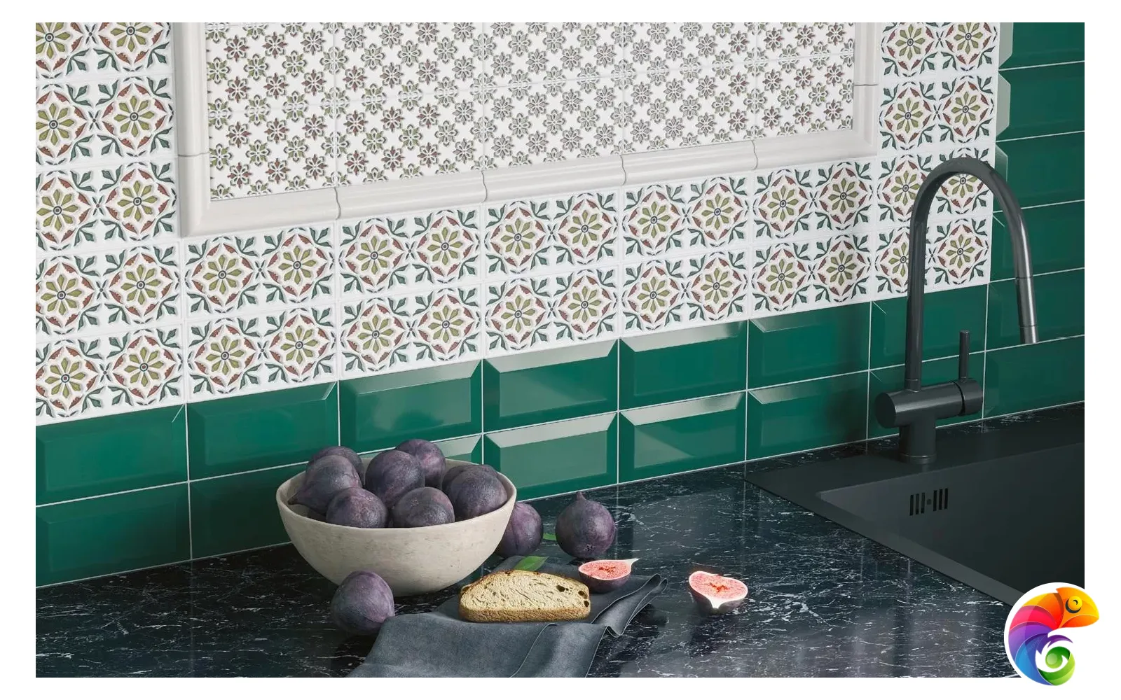 На создание этой изысканной плитки вдохновили палитра и орнаменты всемирно известного фарфора Gien. Два набора декоров решены в цветах, которые будут удачно сочетаться с яркими и серо-бежевыми тонами фоновой плитки. Геометрический орнамент декоративных элементов подчеркнут белой матовой гранилью.