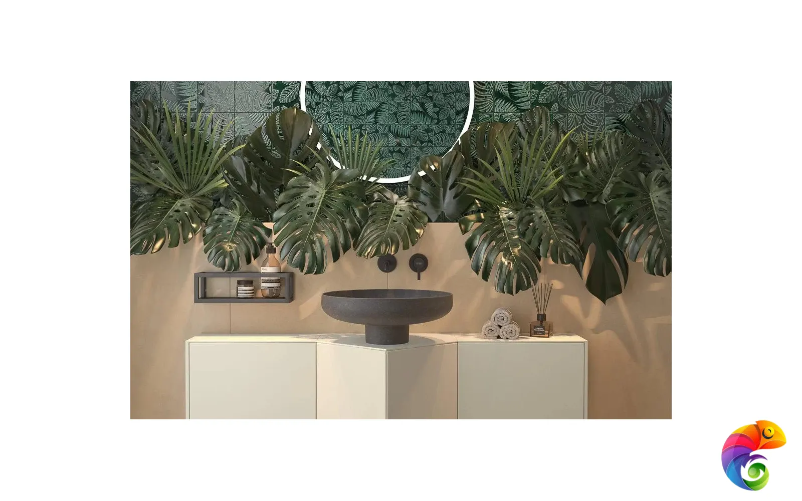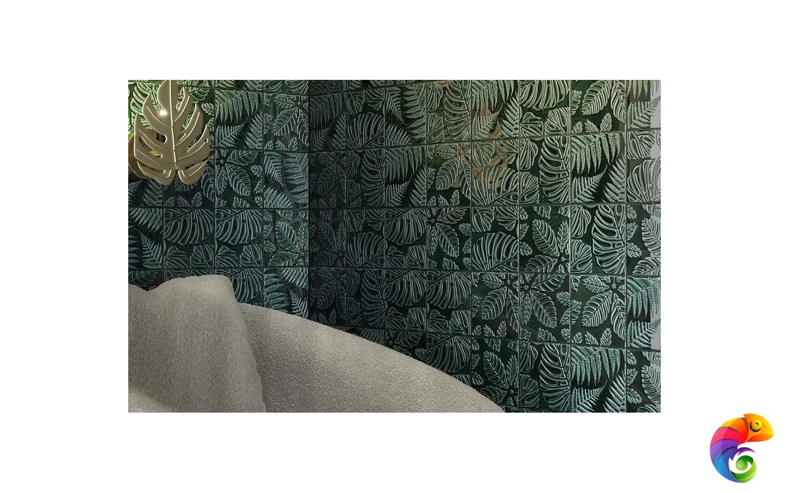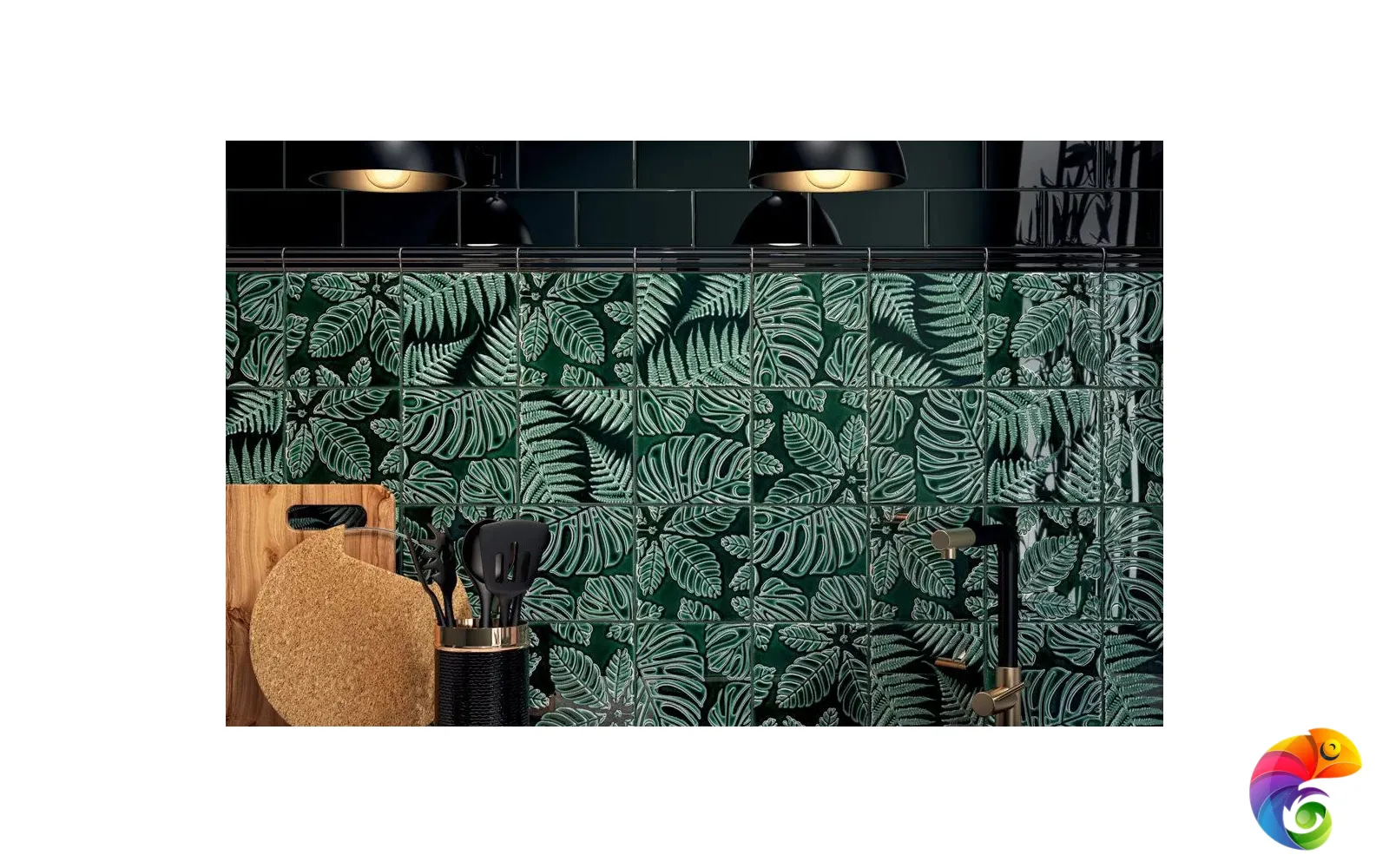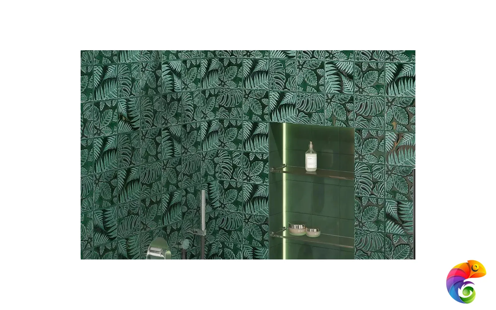 Именно такой пейзаж вдохновил создателей серии «Сантана» на линейку удивительных декоративных элементов, дополненных однотонной тёмно-зелёной плиткой. Тропические мотивы обладают ярко выраженной объёмной структурой. Поверхность декоров покрывает блестящая реактивная глазурь, придающая керамической отделке особую глубину и выразительность.