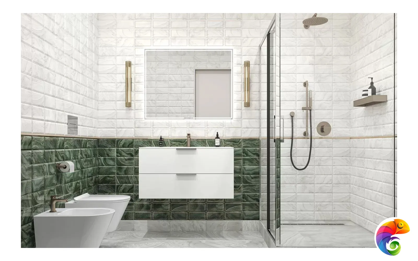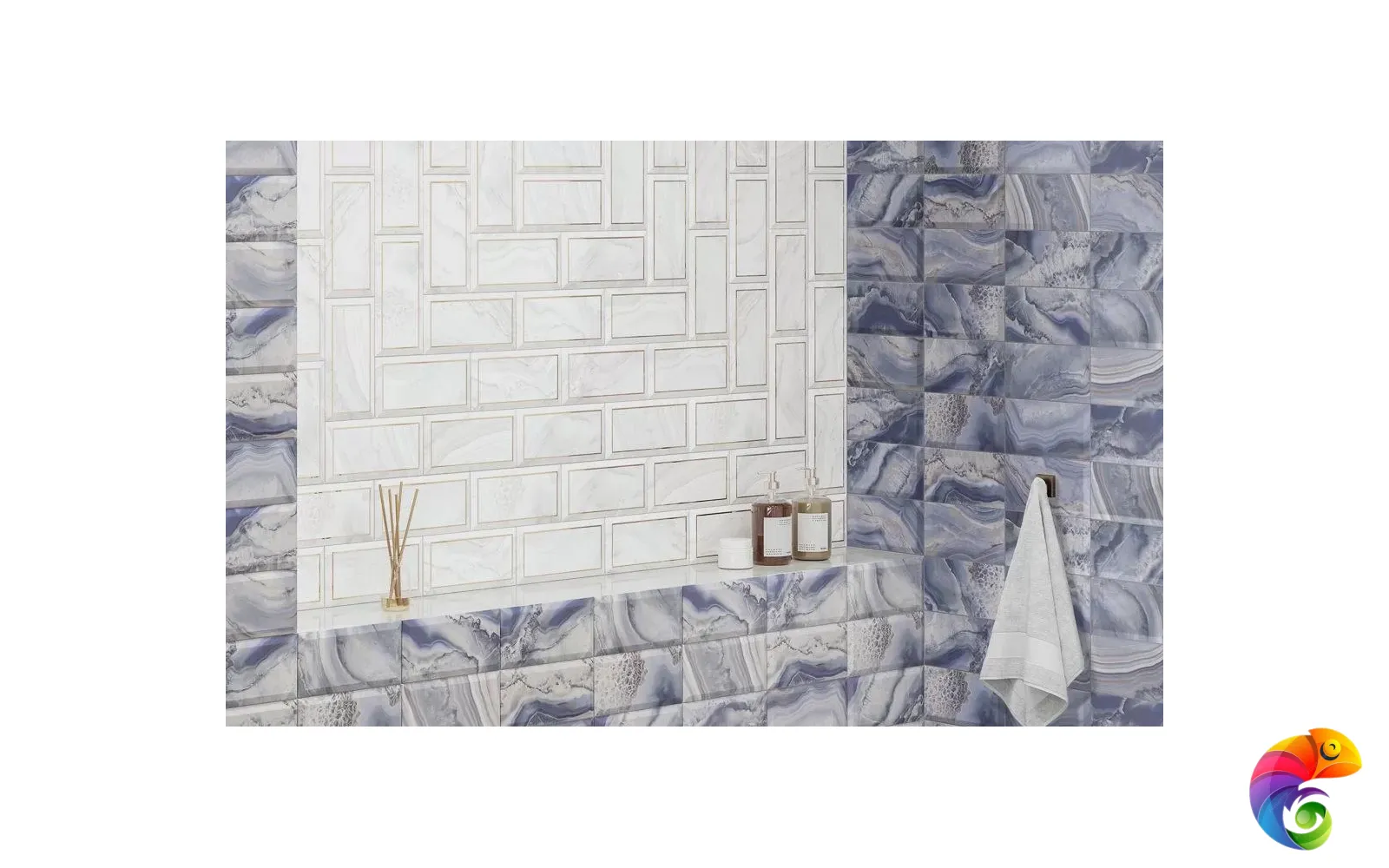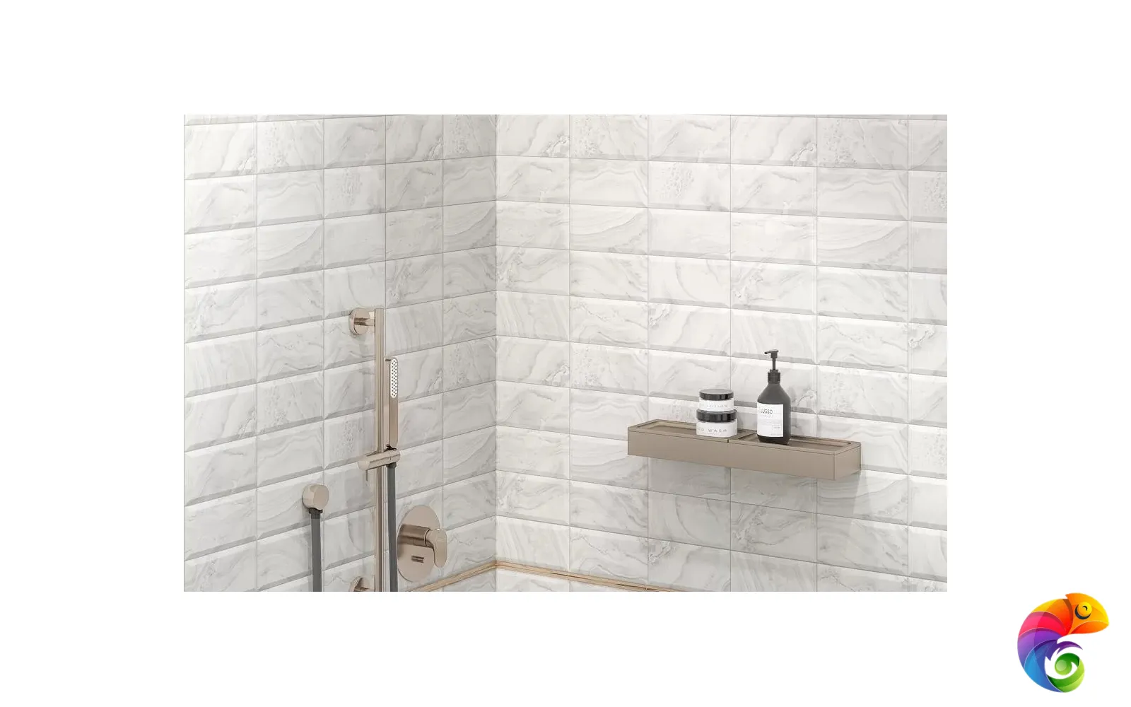 Блестящая прямоугольная плитка имеет скошенные грани и переливается в лучах света как отполированный самоцвет. Уникальность серии заключается в многообразии вариантов рисунка — 25 вариаций в каждом цвете! Отсутствие повторений на поверхности стены создаёт полное впечатление, что для отделки использовался натуральный камень.