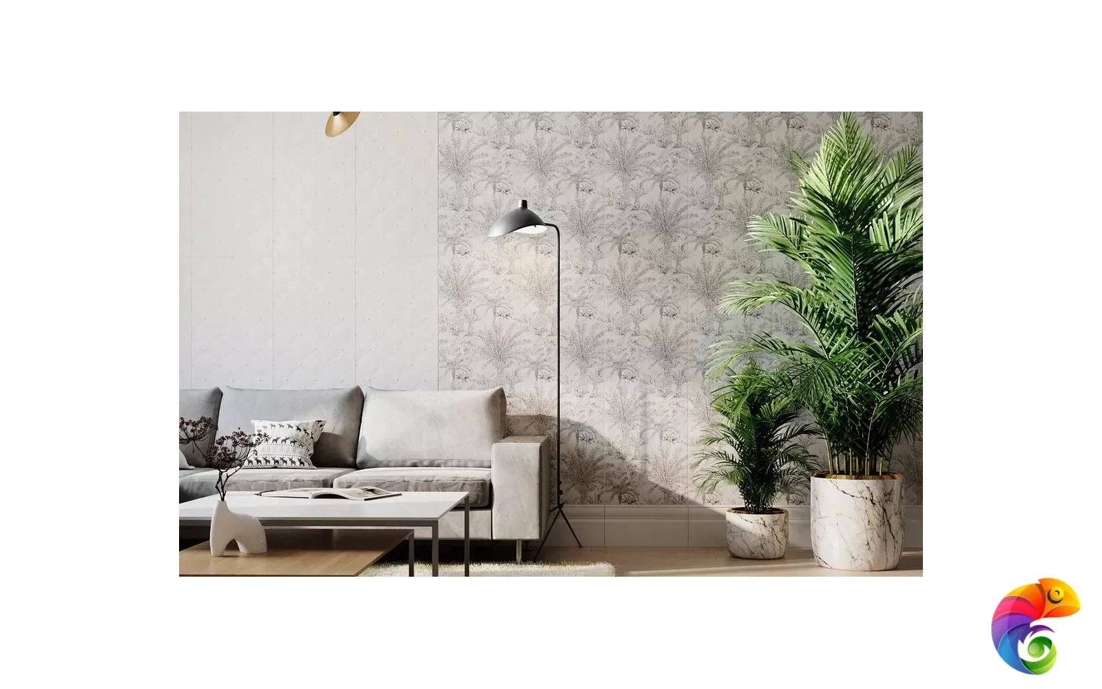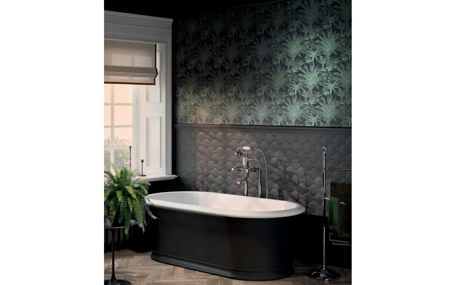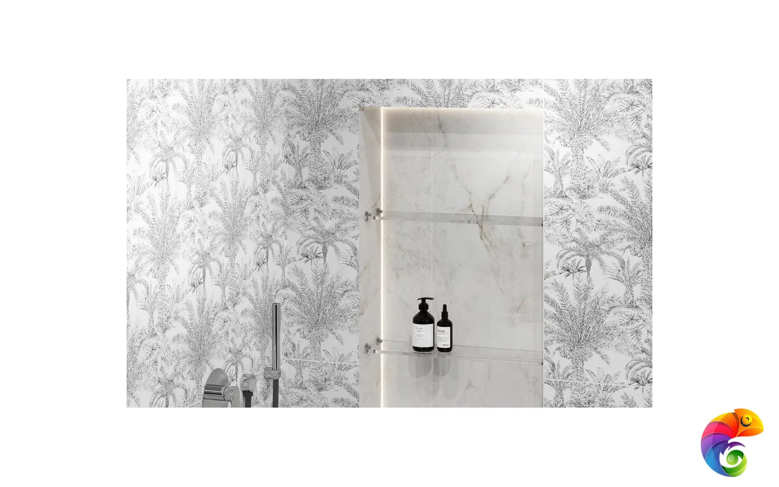 Ахроматические цвета предполагают сочетания с любыми другими цветами. Особенно выигрышно рядом с однотонной черной и белой плиткой будет смотреться серебристый металл. На фоне матовой черной плитки заиграет блеск золота. В линейке присутствует плитка со структурой буазери — классических стеновых панелей с филёнчатой декоративной отделкой. Керамические панели буазери идеально впишутся в классические и неоклассические интерьеры. Непревзойдённый дизайн тропического леса поверх матовой плитки очаровывает изумрудной зеленью. На черном фоне растительность будто бы меняет то оттенки, то насыщенность в зависимости от ракурса. Эффект создаётся посредством металлизированных красок и составов, преломляющих свет, открывая уникальную возможность эксперимента в рамках стиля фьюжн или утонченного ар-деко.