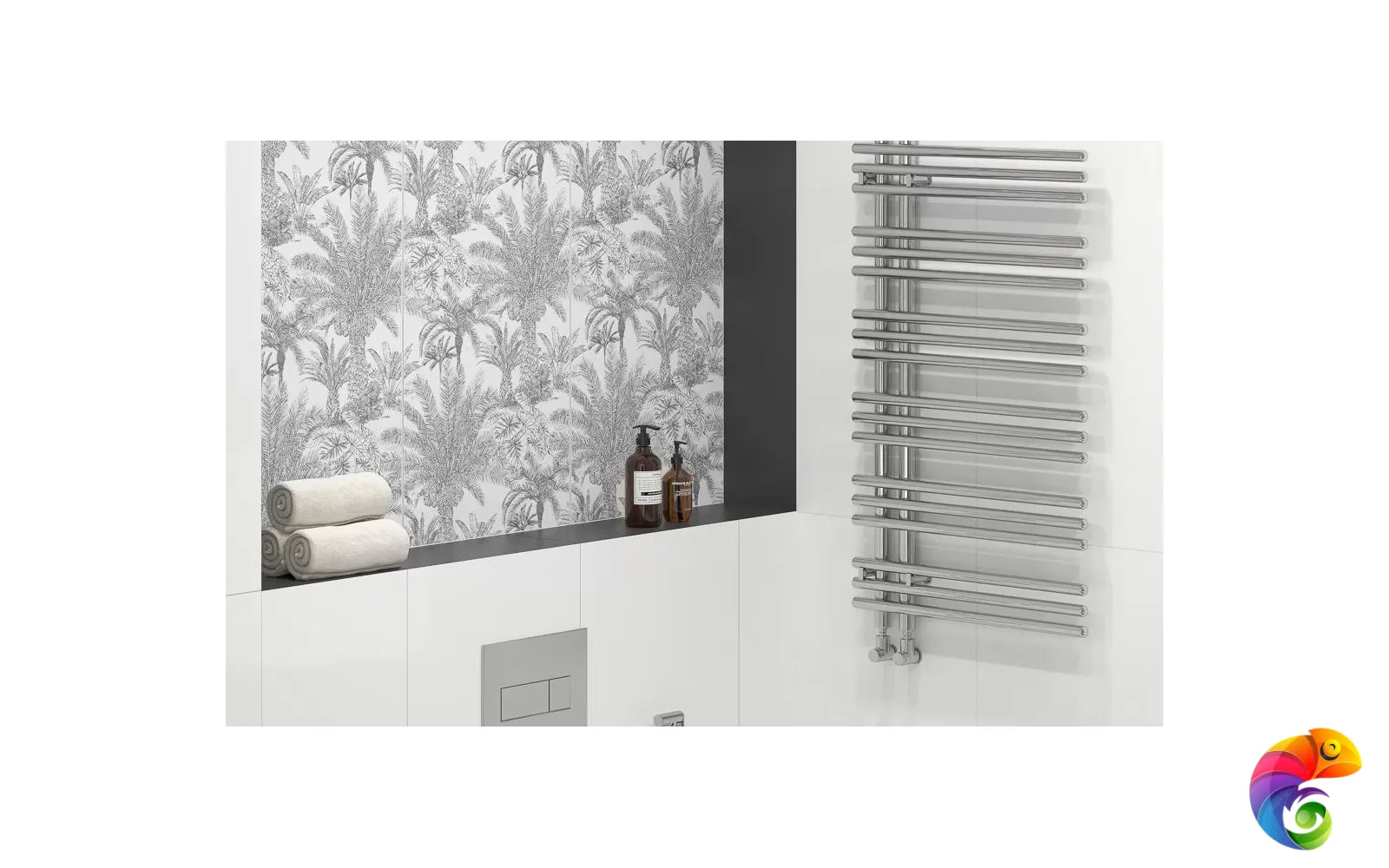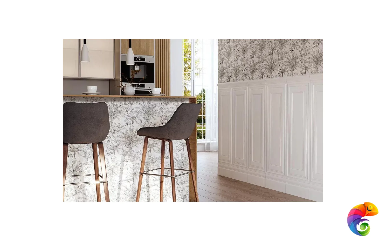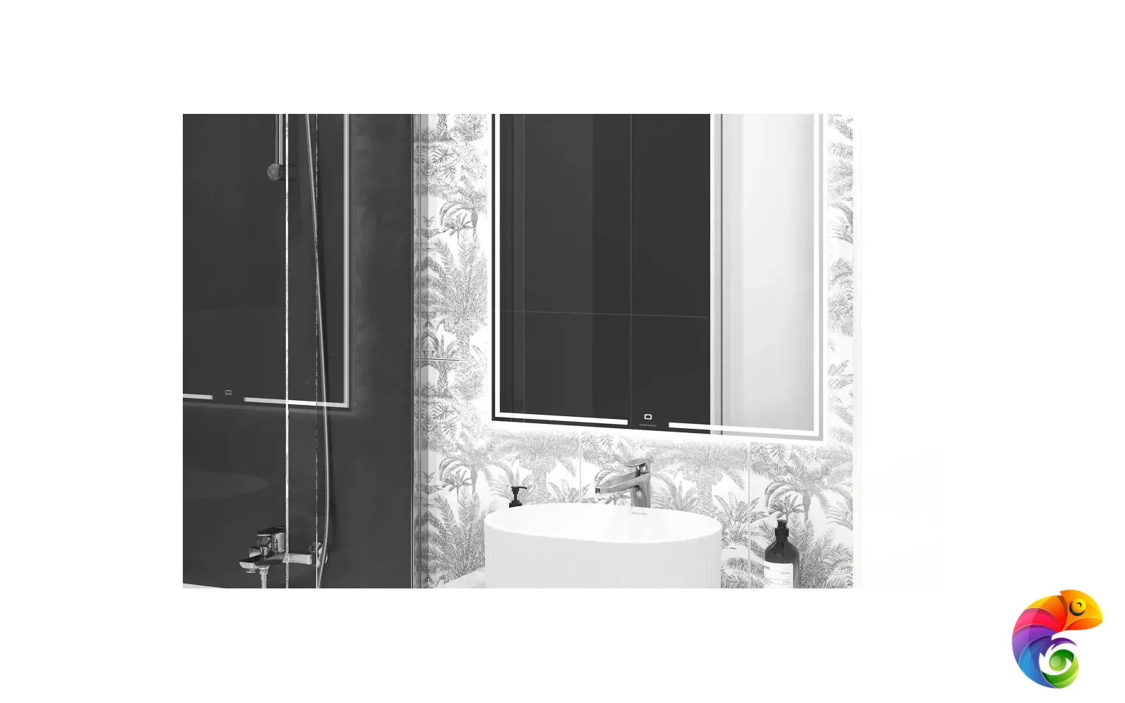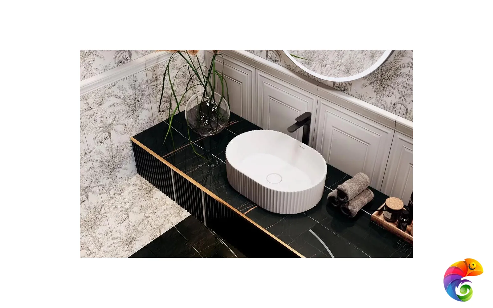 Ахроматические цвета предполагают сочетания с любыми другими цветами. Особенно выигрышно рядом с однотонной черной и белой плиткой будет смотреться серебристый металл. На фоне матовой черной плитки заиграет блеск золота. В линейке присутствует плитка со структурой буазери — классических стеновых панелей с филёнчатой декоративной отделкой. Керамические панели буазери идеально впишутся в классические и неоклассические интерьеры. Непревзойдённый дизайн тропического леса поверх матовой плитки очаровывает изумрудной зеленью. На черном фоне растительность будто бы меняет то оттенки, то насыщенность в зависимости от ракурса. Эффект создаётся посредством металлизированных красок и составов, преломляющих свет, открывая уникальную возможность эксперимента в рамках стиля фьюжн или утонченного ар-деко.