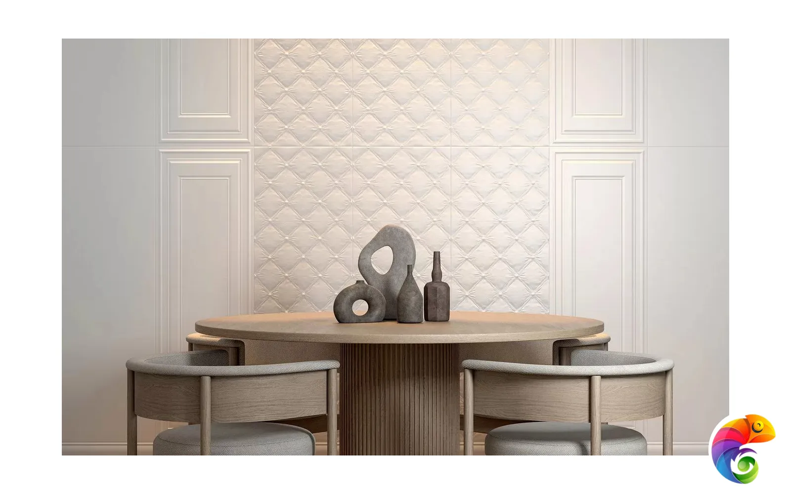 На мягкой матовой глазури керамической плитки 40×120 см представлена структура капитоне — каретной стяжки, более известной в качестве обивки мягкой мебели в классическом стиле. Отделка ассоциируется с тонкой роскошью и благородством, придает интерьеру одновременно и шарм, и уют.