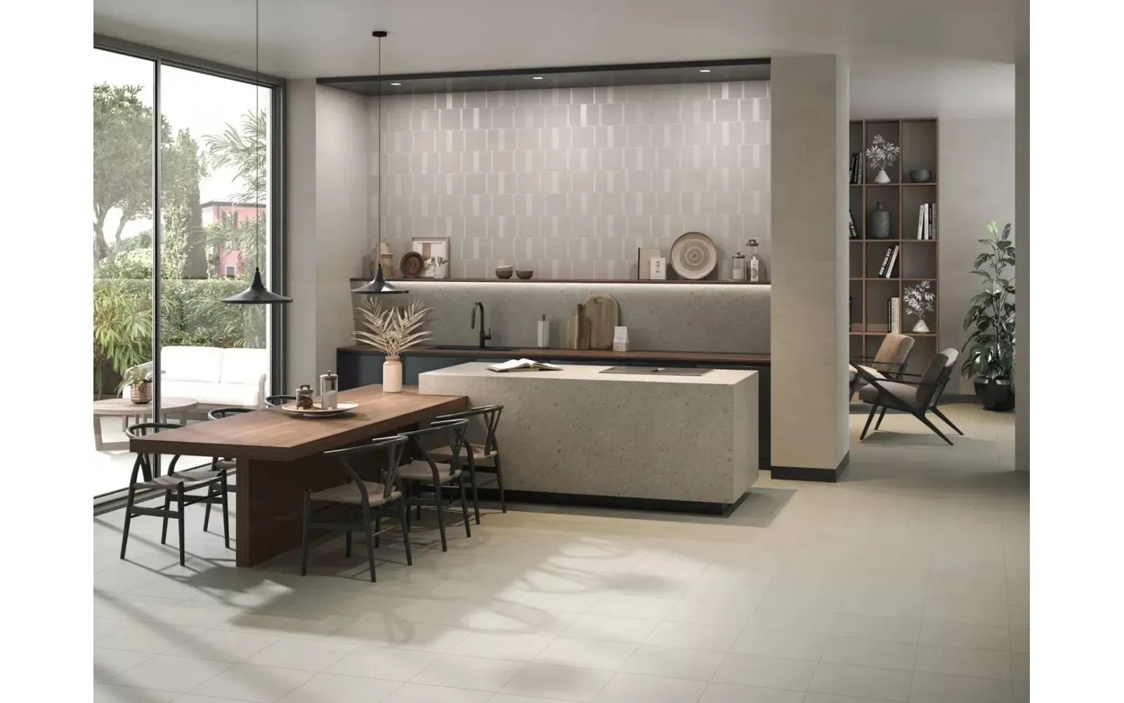 Изящество серии «Скарпа» подчёркнуто её лаконизмом. Поверхность матовой настенной плитки с эстетикой натурального камня подойдет для любого современного интерьера. Фоновые артикулы представлены как в гладком варианте, так и в виде плитки в полоску, которую формирует структура со стильными параллельными линиями.