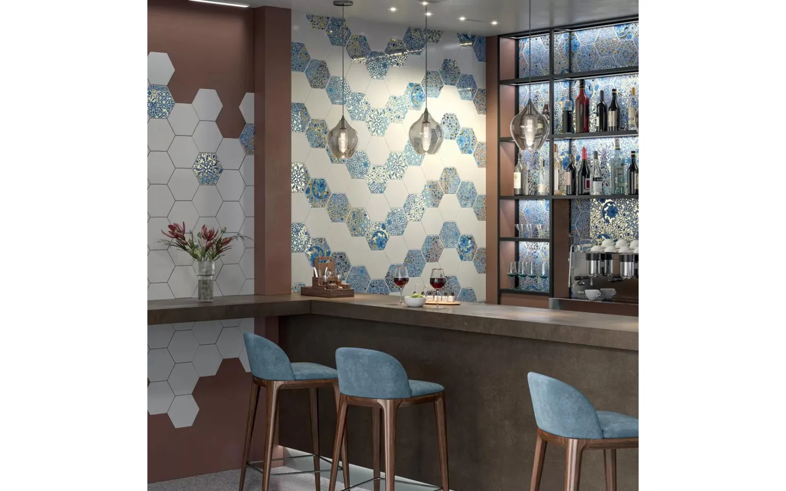 Несколько декоров шестиугольной формы объединены в одну серию общей эстетикой, в которой традиционные португальские узоры соединены с техникой «та̀лья дора̀да» (Talha Dourada): как правило, она используется при создании пышных резных алтарей, а также богатых золочёных украшений для дворцов и общественных зданий.