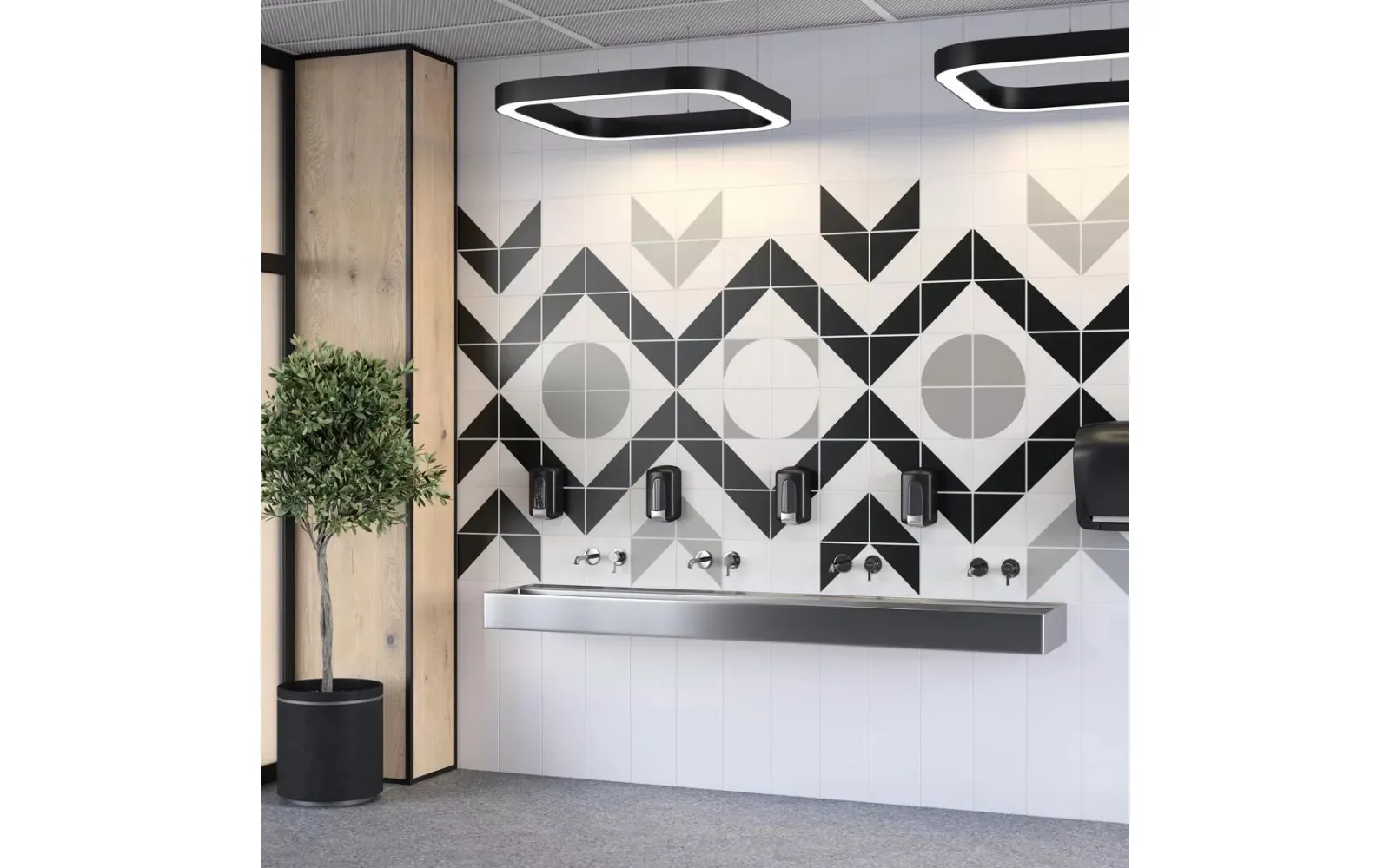 Оказывается, учить геометрию можно и по настенной плитке. В этой серии она содержит декоры, из которых легко сложить как реальные, так и фантазийные фигуры. Все рисунки выполнены в строгих базовых цветах и легко впишутся в любой интерьер, частный и общественный.