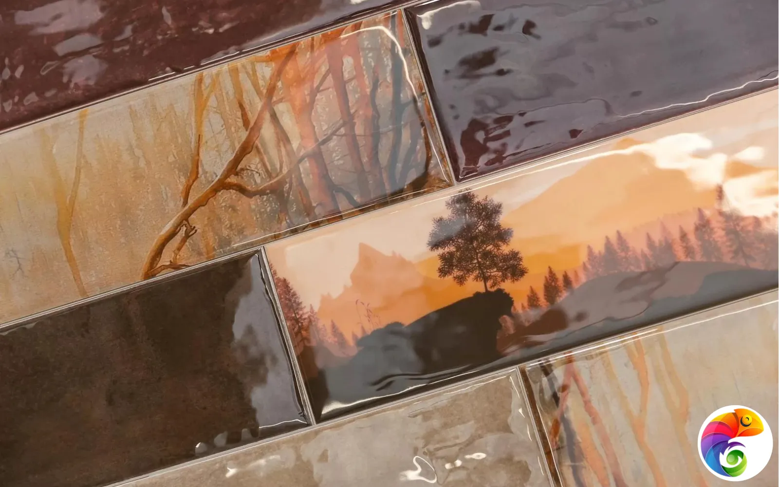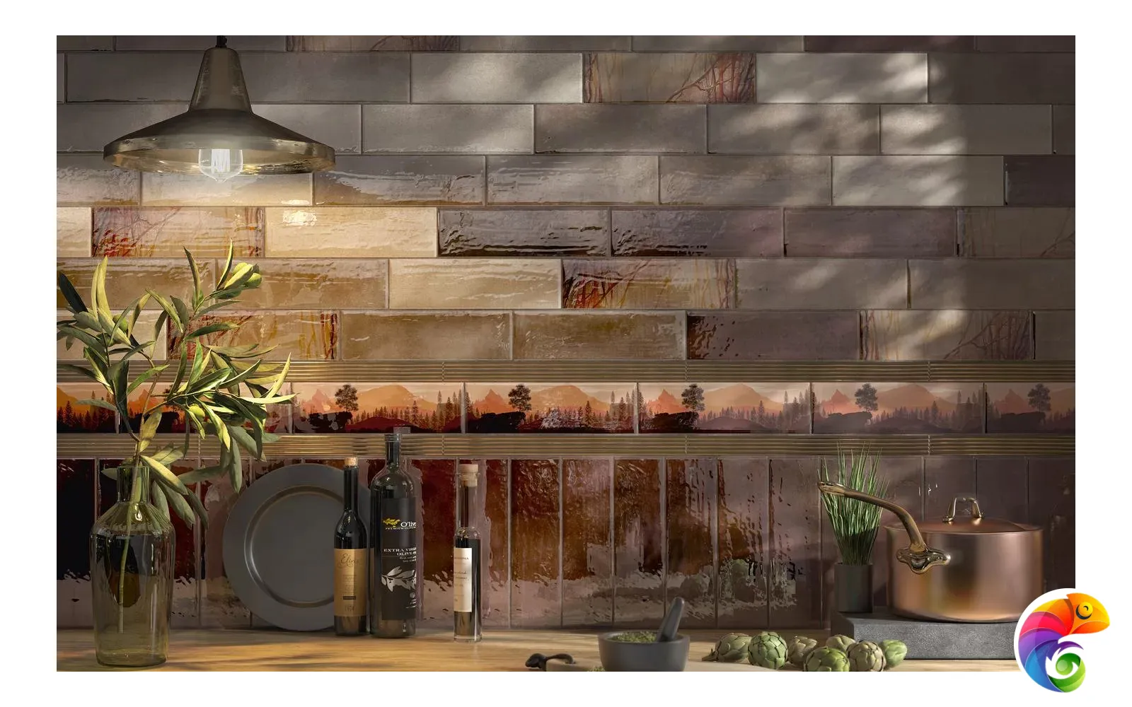 В серии представлена широкая палитра оттенков керамического кирпича: подобрать нужный тон для обстановки не составит труда. Плитка покрыта слоем блестящей глазури, что придает поверхности сходство с рукотворной майоликой. Сделать выкладку еще более интересной позволят декоры. Их выбор также разнообразен: здесь и стилистика акварельных эскизов, и тона ясного неба, и природные пейзажи.
