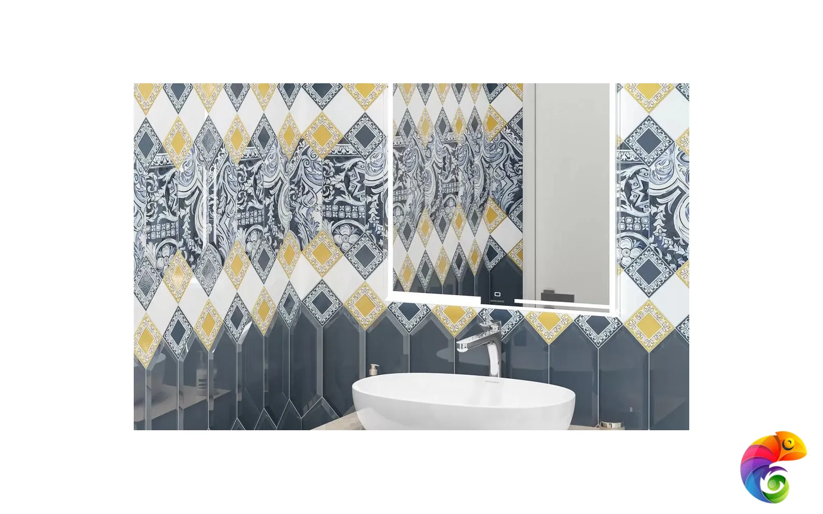 Именно эстетике азулежу посвящены декоративные элементы серии «Алмаш». Глянцевая плитка украшена традиционной флористической росписью, в изящных завитках которой можно разглядеть листья аканта — один из главных графических мотивов росписи античных капителей. Светлые элементы орнамента выступают над поверхностью плитки: такого эффекта позволил добиться специальный декоративный состав.