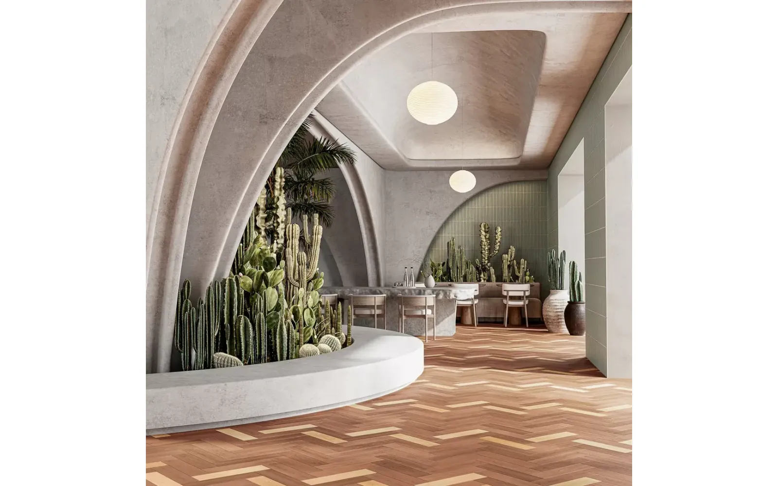Спокойная графика среза аргании представлена в четырёх цветовых решениях, различающихся по глубине тона: два варианта в золотисто-коричневой гамме и два — в бежево-серой. Формат небольшой доски расширяет творческий потенциал материала: благодаря возможности экспериментировать с паркетными раскладками этот керамогранит особенно хорошо подходит для отделки пола. Приятные глазу оттенки и плавные линии среза будут выглядеть органично как в интерьере жилой зоны, так и в коммерческом пространстве.