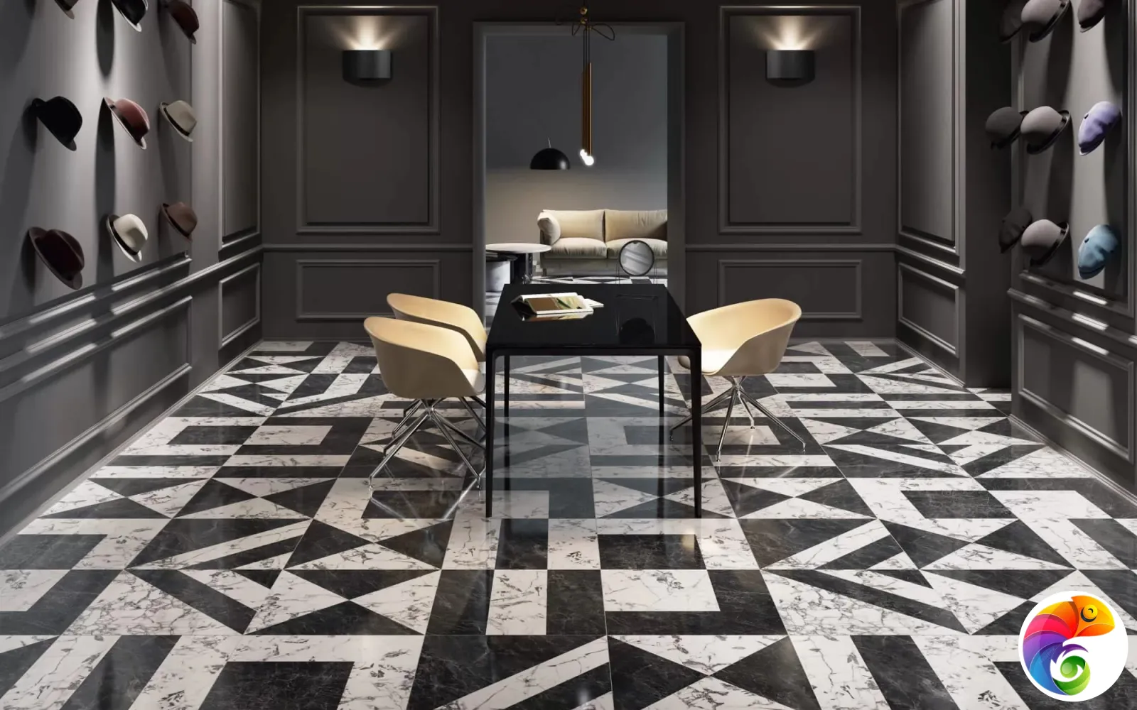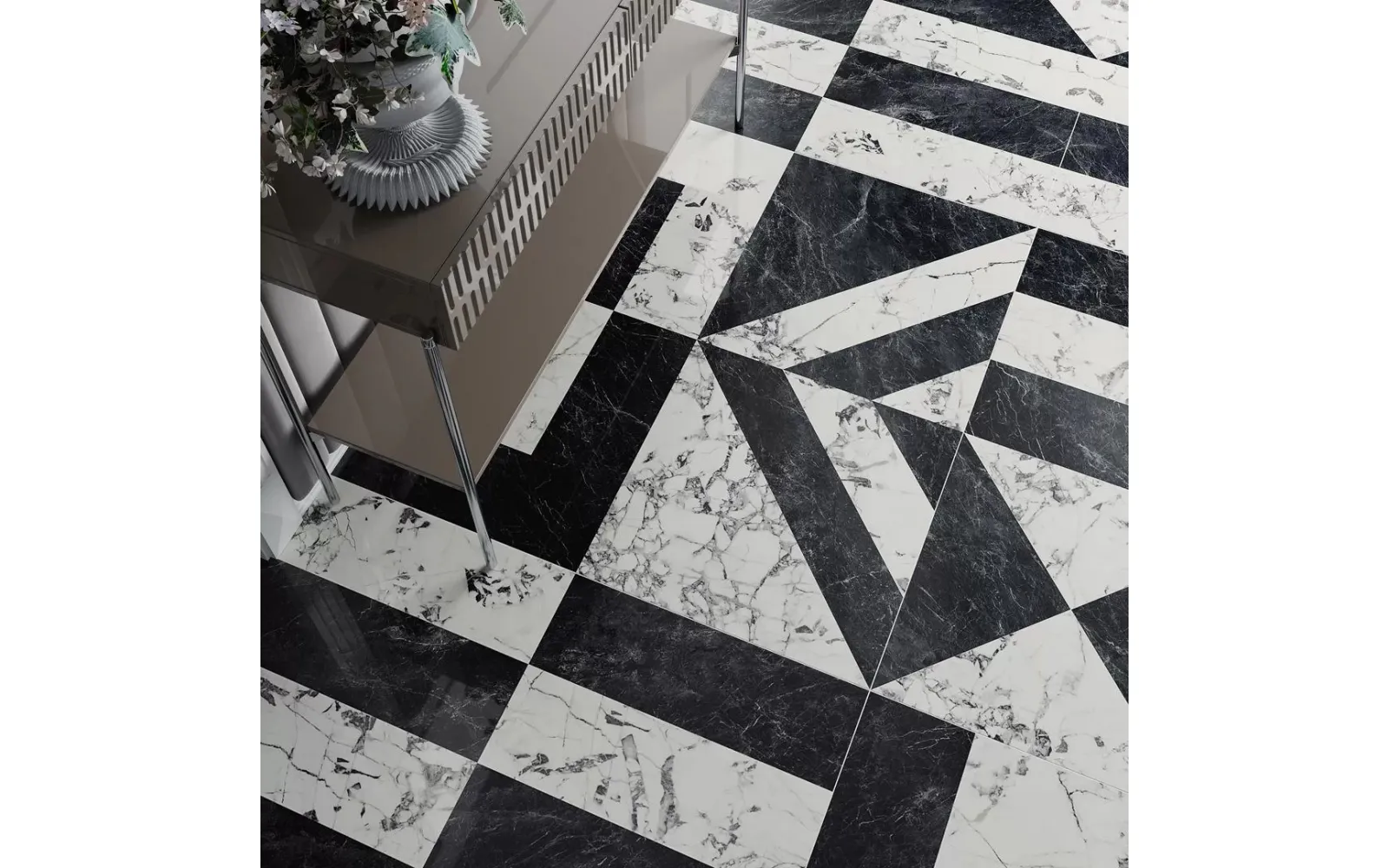 Сочетание белого и чёрного мрамора в крупном геометрическом орнаменте — смелое интерьерное высказывание, которое точно не останется без внимания. Этот выразительный дизайн вдохновлён отделкой миланских входных групп, справедливо считающихся одной из визитных карточек ломбардской столицы.