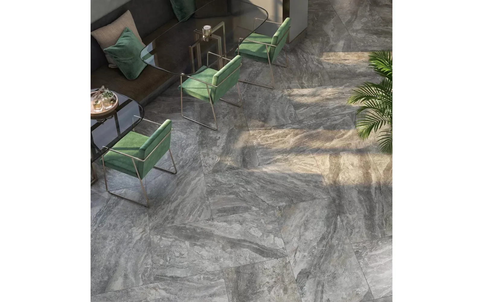 Поверхность мрамора «Арабескато Гриджио» передана в этой серии удивительно реалистично благодаря фактуре. Современная технология декорирования поверхности Dry Fix позволяет воспроизводить мельчайший рельеф, переливающиеся минеральные вкрапления и прожилки. Особую ценность материалу придают новый крупный формат и устойчивость к глубокому истиранию.
