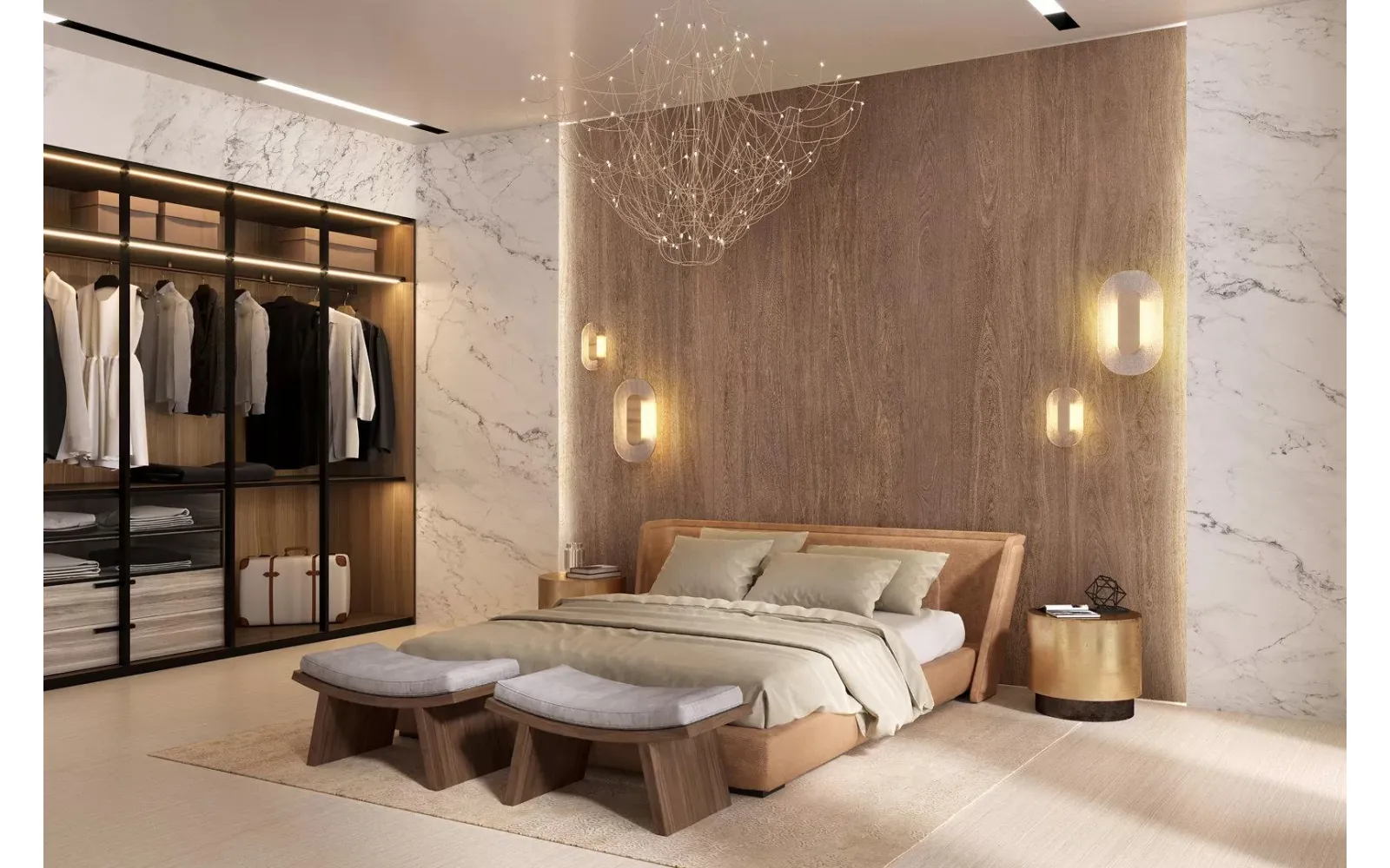 Дуб издревле ценится за прочность и эффектную текстуру с выразительным крупным рисунком на срезе. Со временем поверхность темнеет и приобретает оттенок благородной старины, которая повышает ценность и долговечность материала. Цельная дубовая древесина — неотъемлемая часть дорогих изысканных интерьеров. Использовать такой керамогранит в спальне или гостиной можно в нескольких разных цветах: помимо классической древесной гаммы, в серии предложен матовый керамогранит в цвете «графит».
