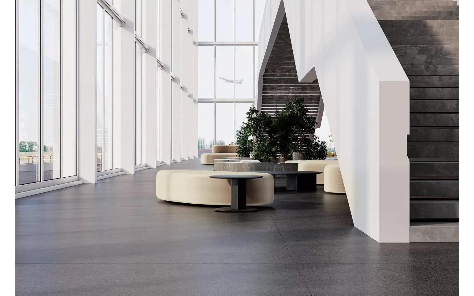 Свойства базальта позволили ему стать одним из самых популярных материалов в строительстве и отделке. Тёмно-серый керамогранит с эстетикой базальта станет отличным решением там, где нужна натуральная матовая поверхность с минимальным количеством стыков. Керамогранит 120×120 см, а также 119,5×320 см воспроизводит базальт «Пьетра Лавика» родом с острова Сицилия. Эта горная порода со склонов вулкана Этна, образовавшаяся в результате извержений, ценится в интерьерной отделке.