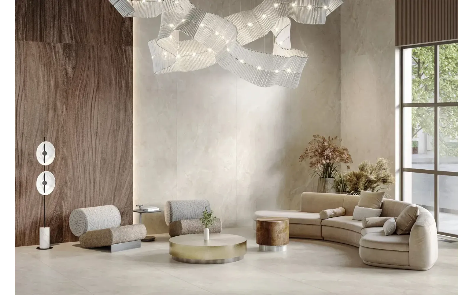Полированный керамогранит под серый мрамор — интерьерное решение, пользующееся спросом. Такой благородный фон придаёт интерьеру глубину и строгость, а также служит надёжной основой для дизайнерских акцентов. Материал воспроизводит красоту тосканского мрамора породы «Бардилио Империале»: он отличается мягким, почти незаметным рисунком, который сформирован тонкими светлыми прожилками. После полировки керамогранит раскрывается в полную силу — рисунок становится более ярким и контрастным.