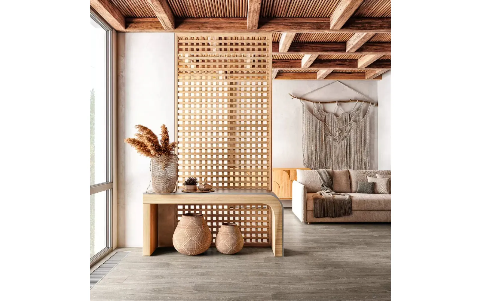 В серии «Менара» чёткая и реалистичная графика древесного среза представлена в семи естественных оттенках бежево-коричневой гаммы, подходящих для интерьеров в различных стилях, включая классику, неоклассику, сканди, мид-сенчури, лофт и других. Приятная на ощупь фактура усиливает сходство с настоящей деревянной доской.