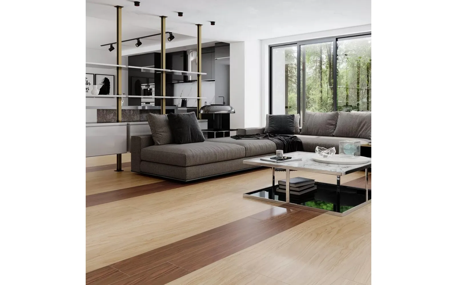 Изящный рисунок оливы неуловимо напоминает мрамор: керамический гранит с такой графикой придаст особую элегантность как классическому, так и современному интерьеру. Актуальный формат широкой планки позволяет представить красоту текстуры в самом выгодном свете и разнообразить раскладку