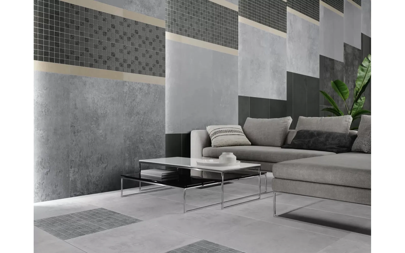 Ещё одна вариация на тему бетона, который прочно закрепился в ряду основных отделочных материалов для современных интерьеров. Керамический гранит «Про Фьюче» представляет бетон в восьми градациях серого. Продукт устойчив к истиранию и подходит для использования в коммерческих помещениях. Интересное дополнение к серии – мозаика с рельефным орнаментальным декором, нанесённым при помощи пескоструйной обработки.