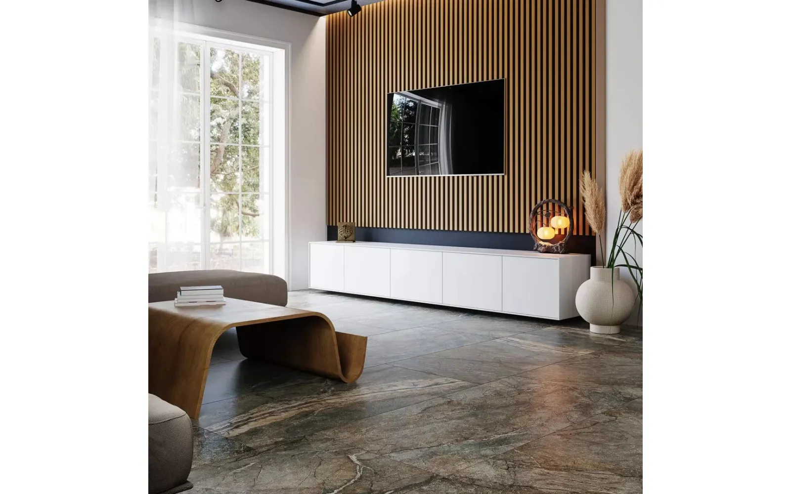 Название этого итальянского мрамора лучше всего описывает его эстетику: поверхность, в которой соединяются тёплые песочные и коричневые оттенки, пересекают белые и серые искрящиеся линии, похожие на сплетение древесных корней Благодаря технологии производства Double Loading этот элегантный и прочный керамический гранит устойчив к глубокому истиранию.