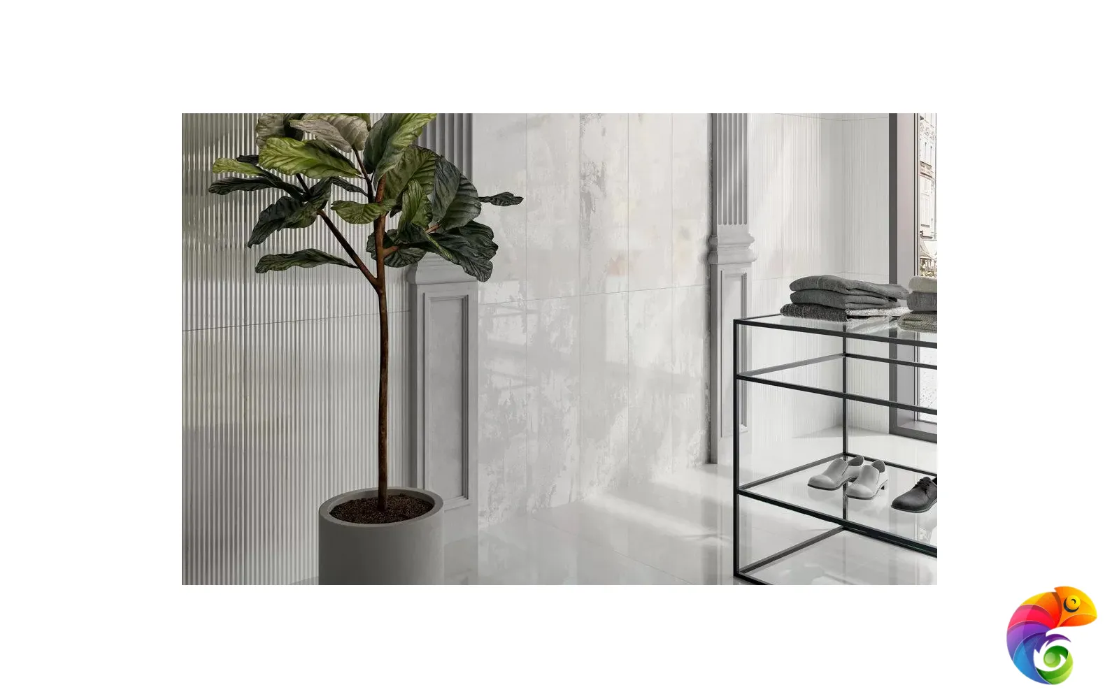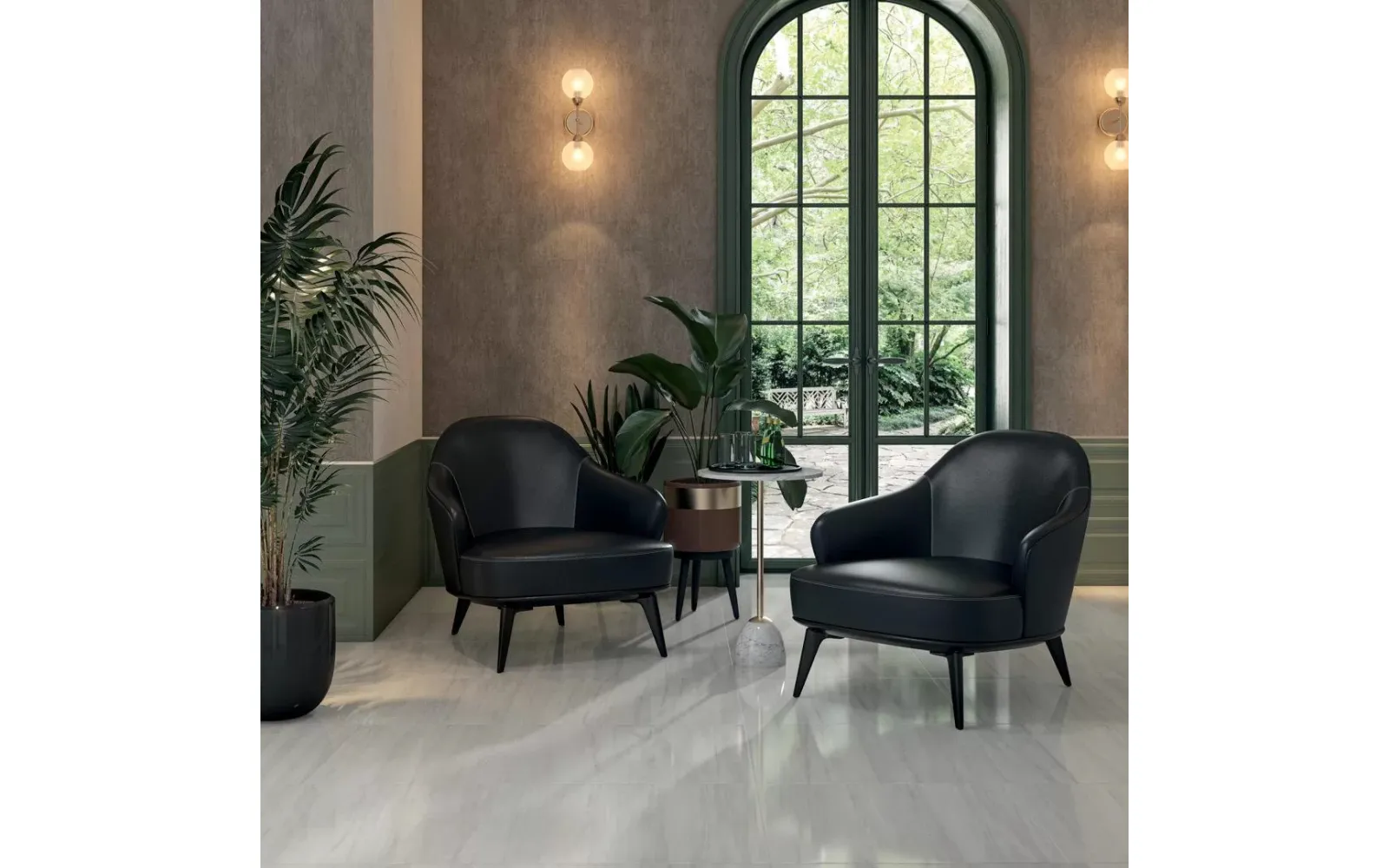 Светлый цвет стен считается эталонным в современных интерьерах, дизайнеры продолжают искать новые оттенки, и одним из удачных считается цвет гусиного пера, с долей серого и без желтизны. Очень похожий оттенок используется в керамограните для пола данной серии, представляя собой идеальную базу для интерьеров. На фоне из серой керамической плитки себя будут прекрасно чувствовать предметы мебели самых разных цветовых и стилистических оттенков.