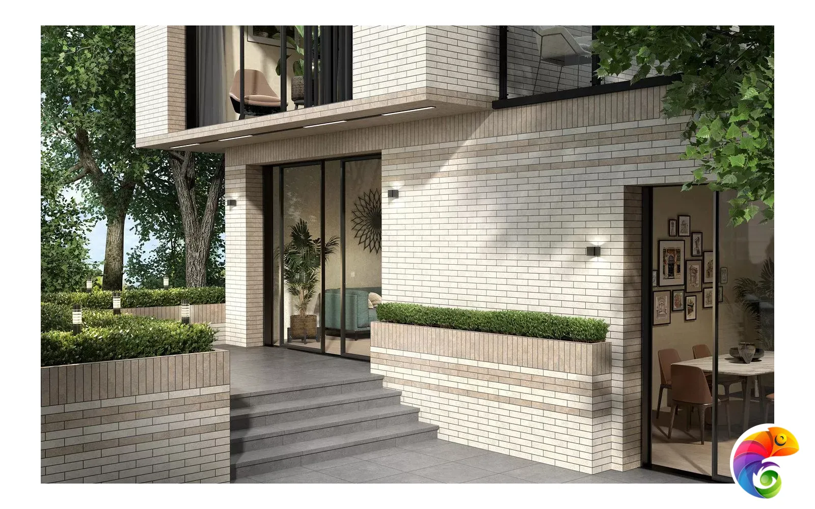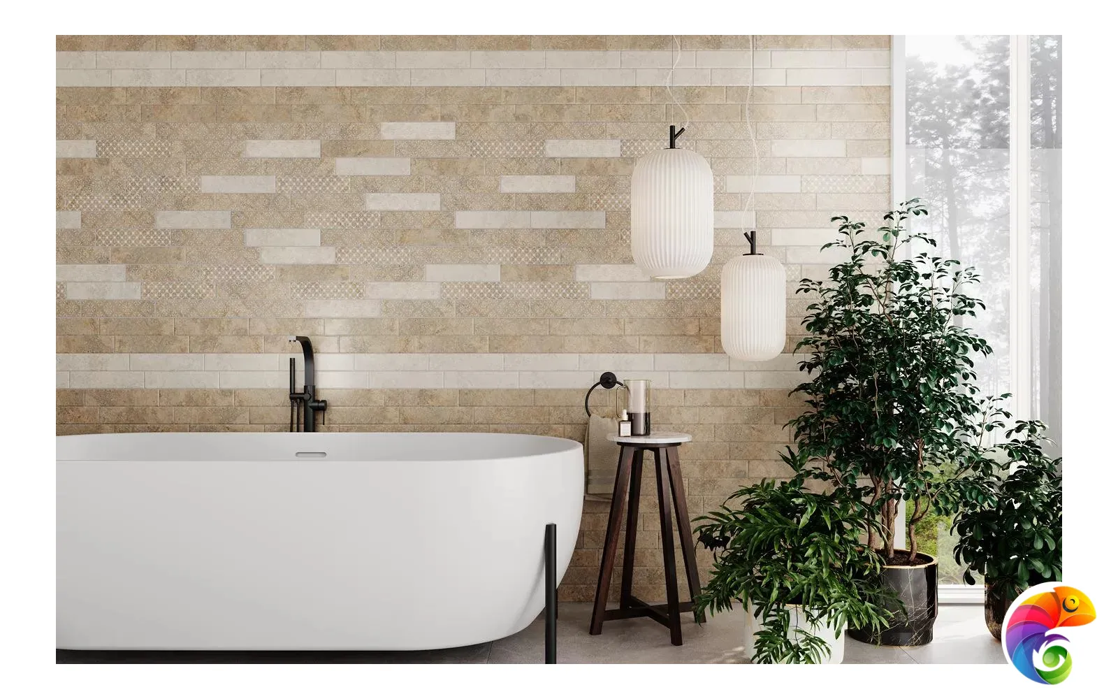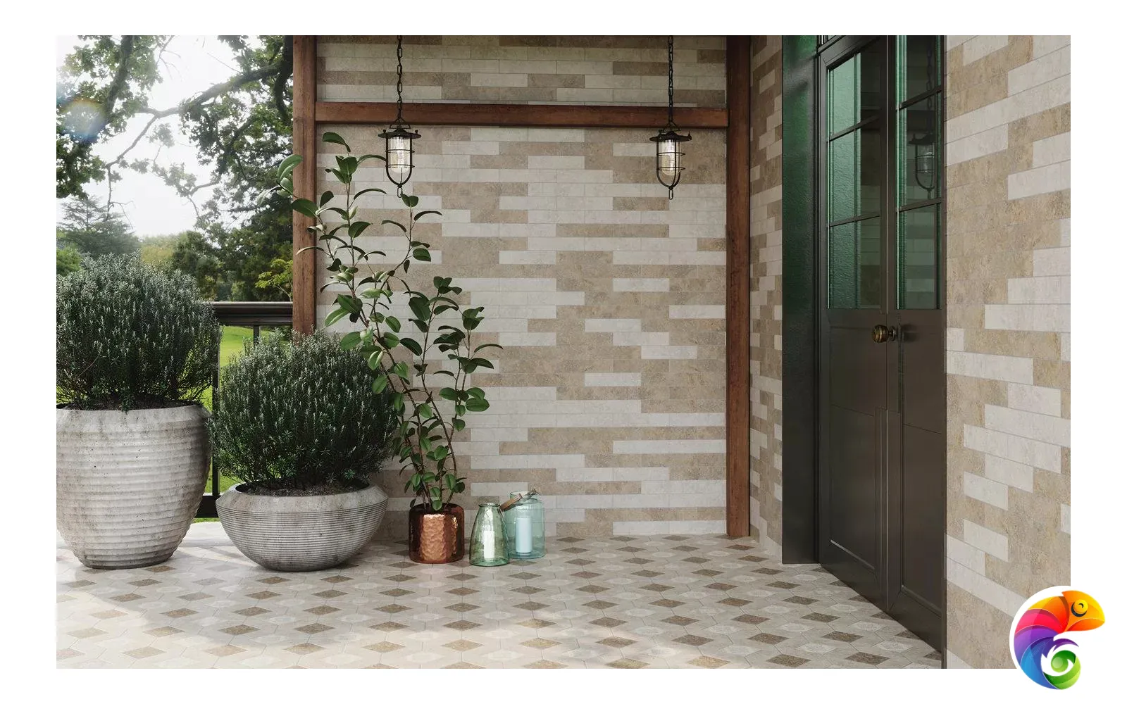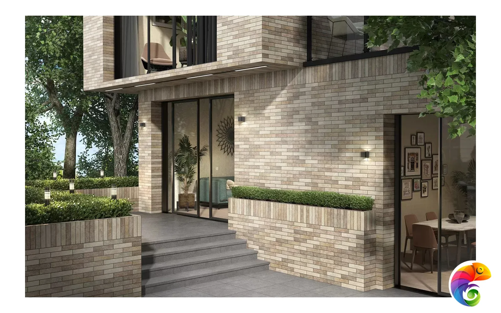 Этот керамический кирпич выглядит рукотворным: его форма с едва неровными краями и живые оттенки получены на современной линии — но с тёплым ощущением штучного производства. Декоры несут ту же эстетику и дополнительно украшены классическими орнаментами, выполненными с небольшим рельефом.