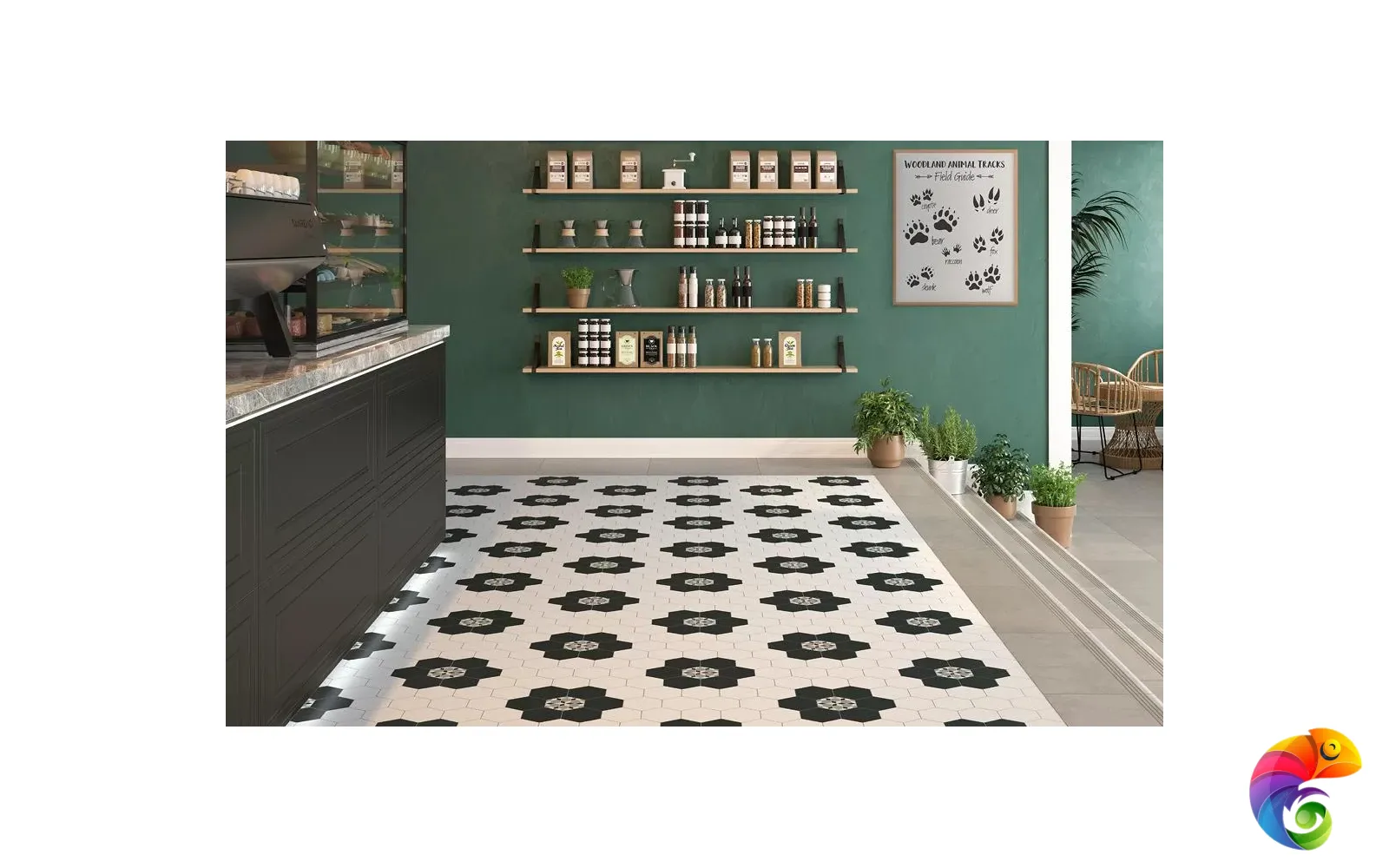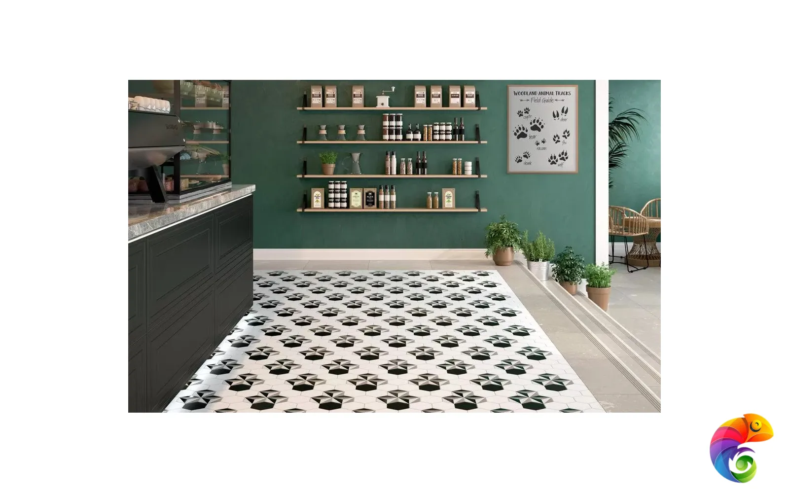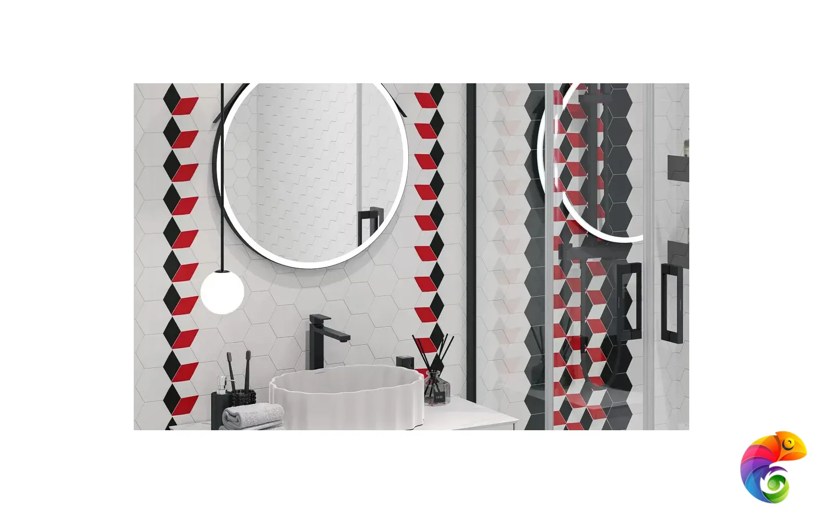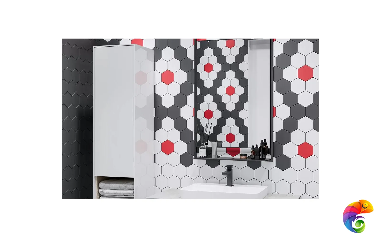 В случае с серией «Кальсада» все стилизованные соты керамогранита закреплены на сетке, образуя удобный для работы формат 37×31 см. Его можно разнообразить, добавляя в раскладку штучные декоры, часть из которых решена в серо-чёрной гамме, а другая содержит дополнительный красный. Детали паттерна подчёркнуты при помощи блестящего объёмного состава, что делает рисунок декоров ещё выразительнее. В случае выбора такого материала в качестве керамогранита для кухни подобная детализация узоров создаст интересный акцент.