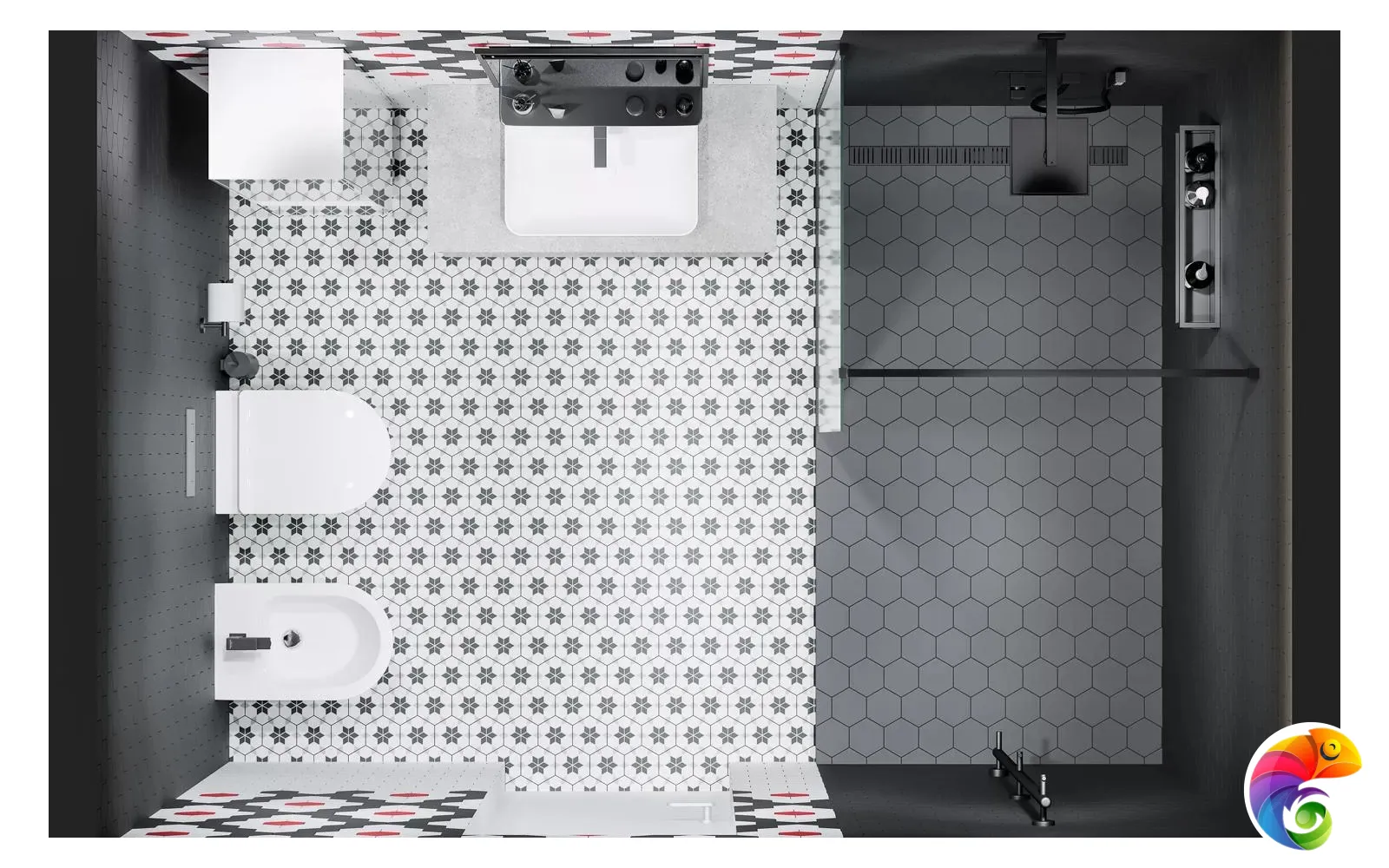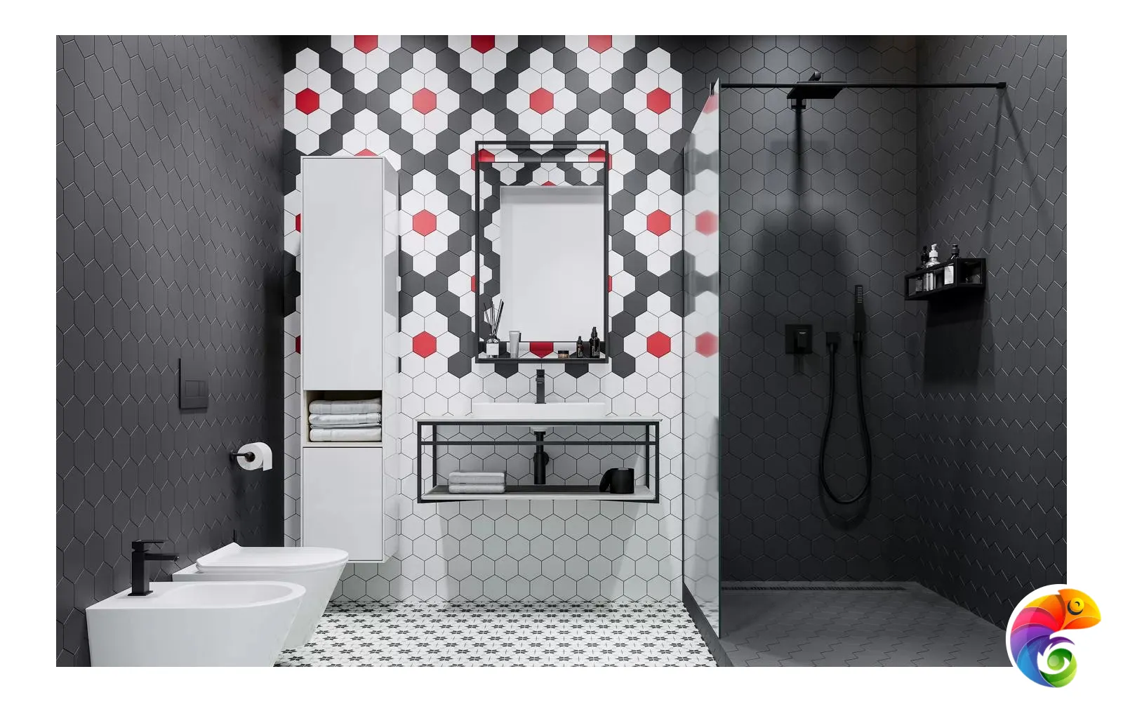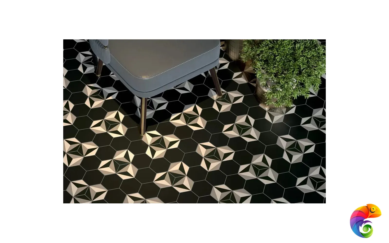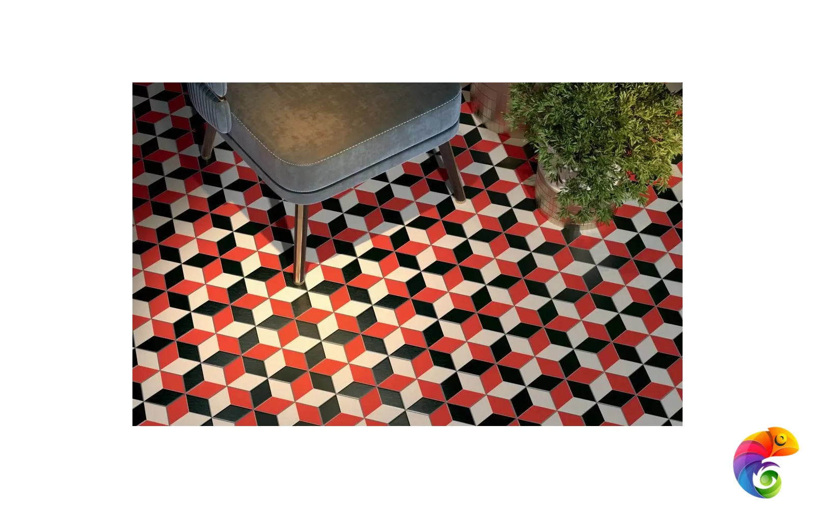 В случае с серией «Кальсада» все стилизованные соты керамогранита закреплены на сетке, образуя удобный для работы формат 37×31 см. Его можно разнообразить, добавляя в раскладку штучные декоры, часть из которых решена в серо-чёрной гамме, а другая содержит дополнительный красный. Детали паттерна подчёркнуты при помощи блестящего объёмного состава, что делает рисунок декоров ещё выразительнее. В случае выбора такого материала в качестве керамогранита для кухни подобная детализация узоров создаст интересный акцент.