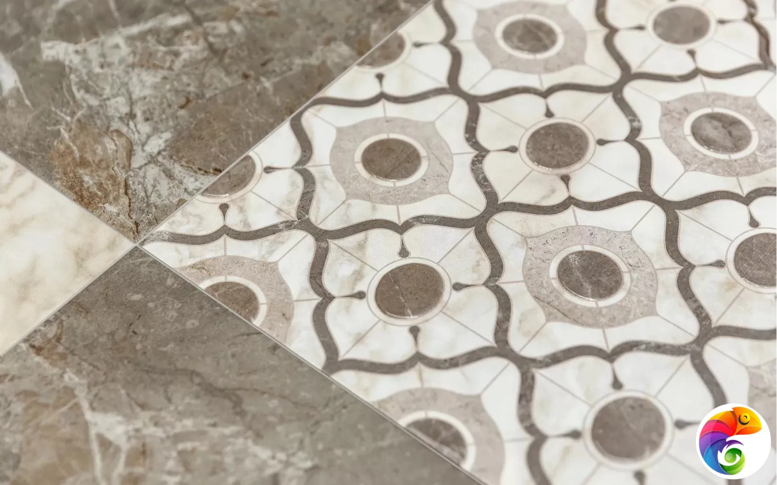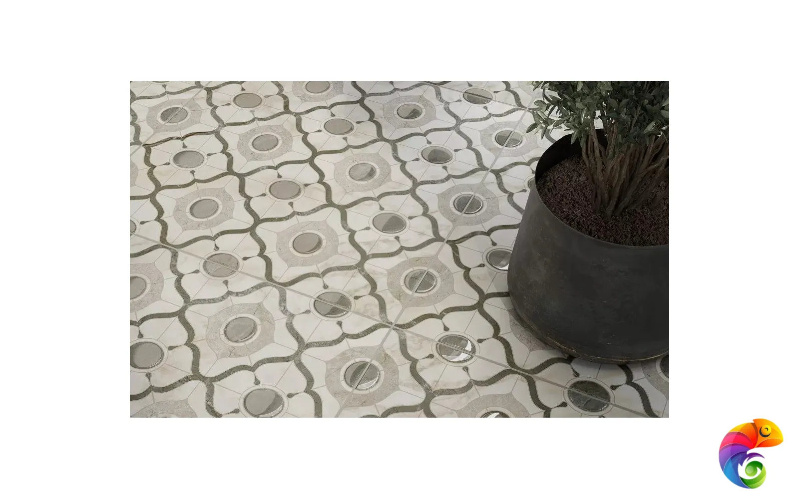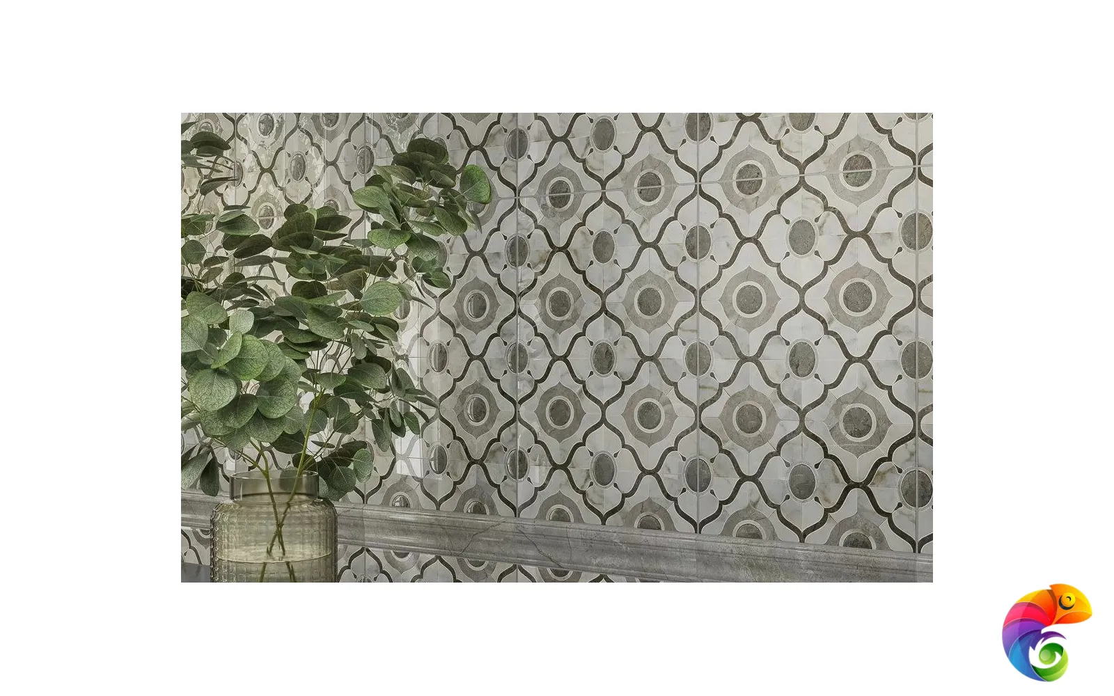 Вариант декорации с флорентийским четырёхлистником органично впишется в интерьер в классическом стиле. Точно такие же растительные орнаменты украшают декоративную плитку, предназначенную для укладки на полу.