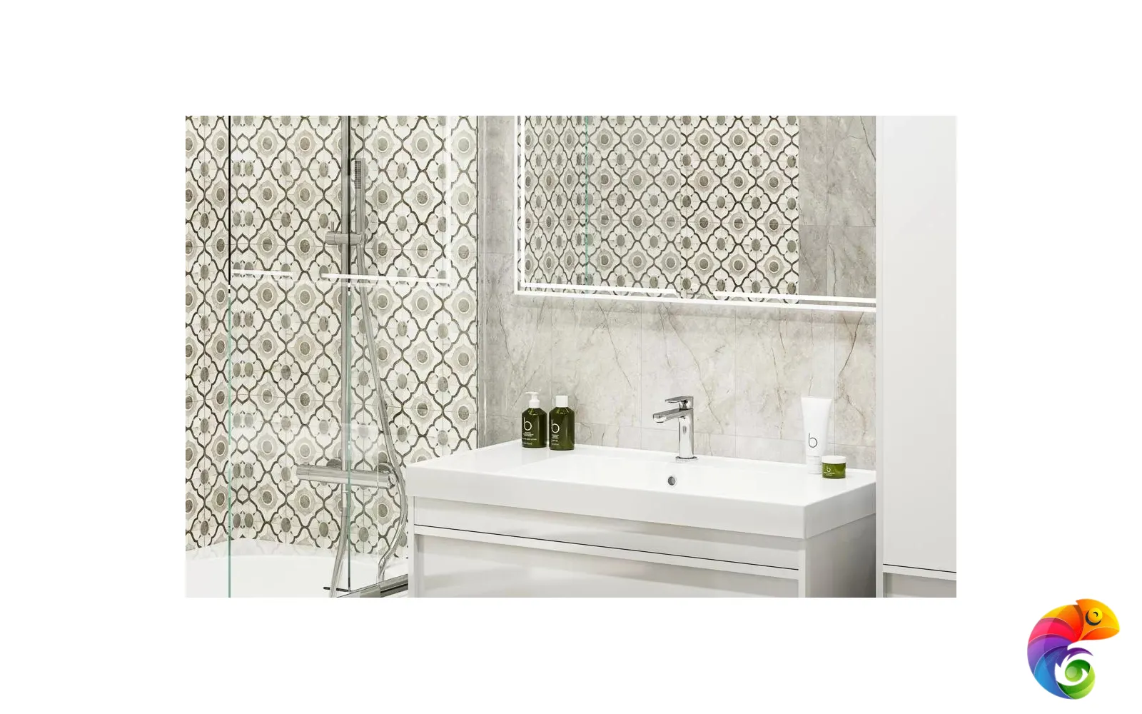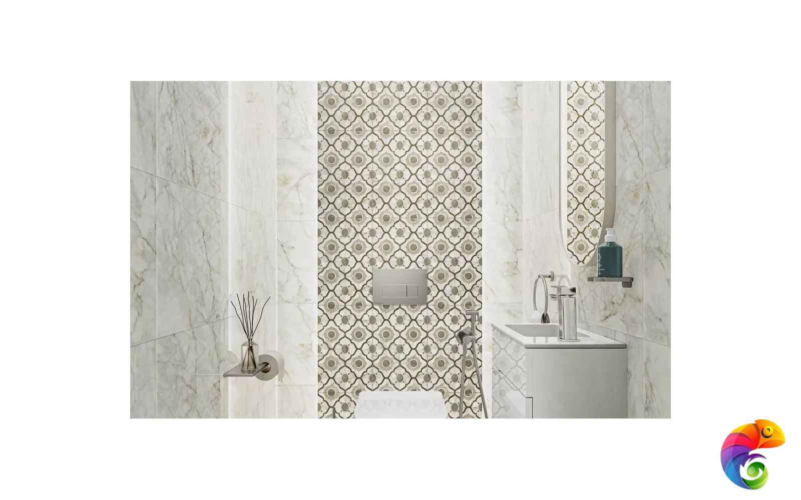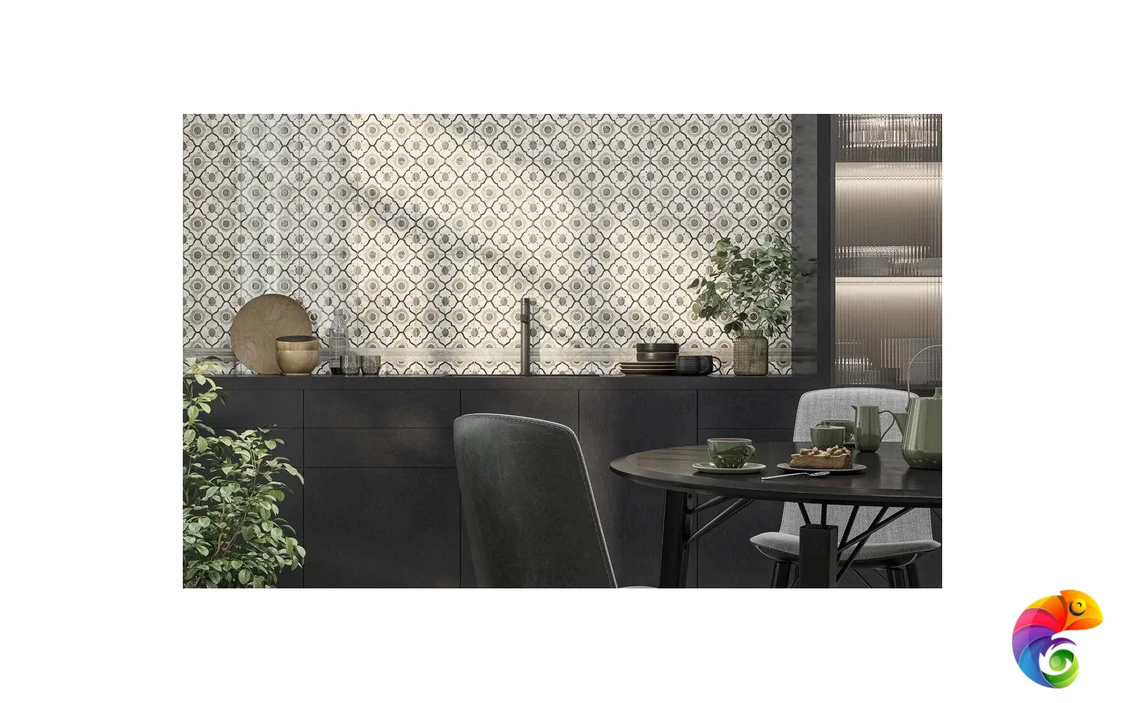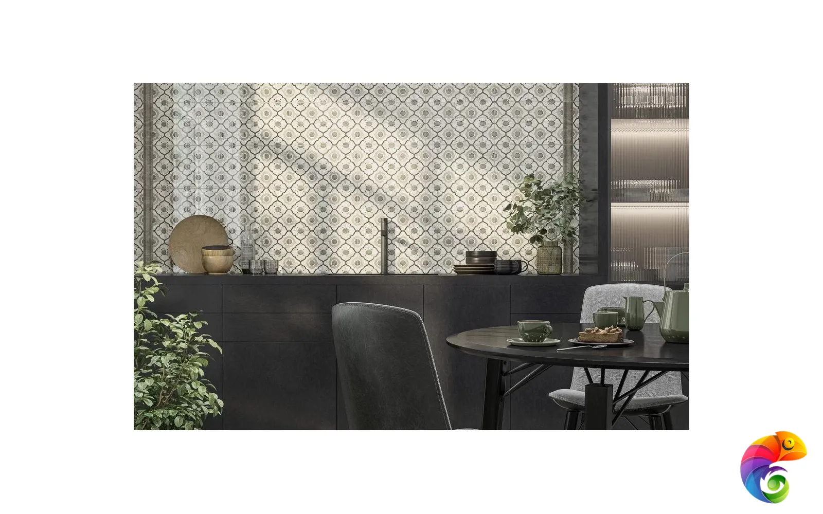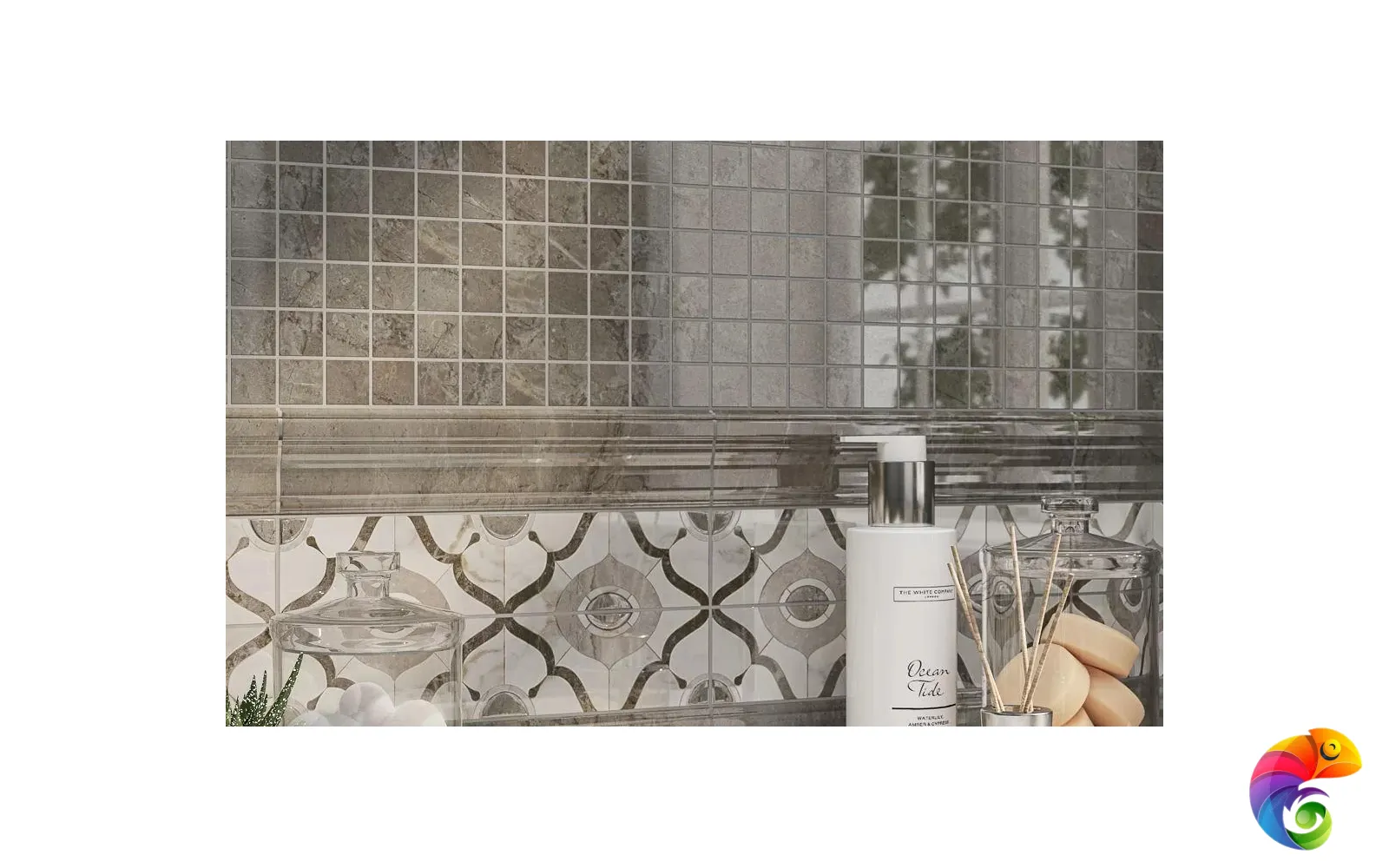 Изюминка серии — стильная мозаика. Четыре вида мозаичных декоров позволяют создать каскад, в котором светлые элементы плавно перетекают в тёмные. Такой приём будет эффектно смотреться как в вертикальной раскладке, так и по горизонтали — например, на кухонном фартуке.