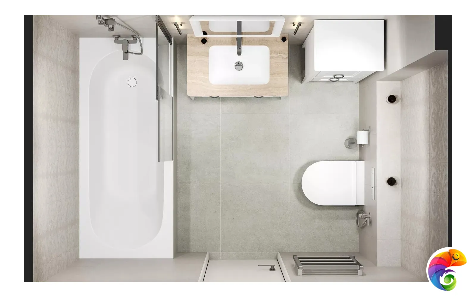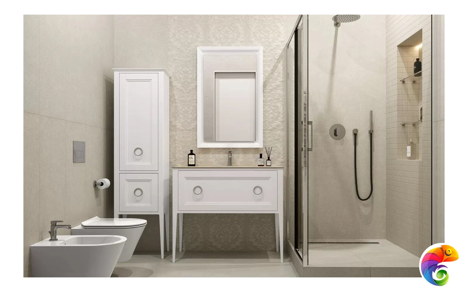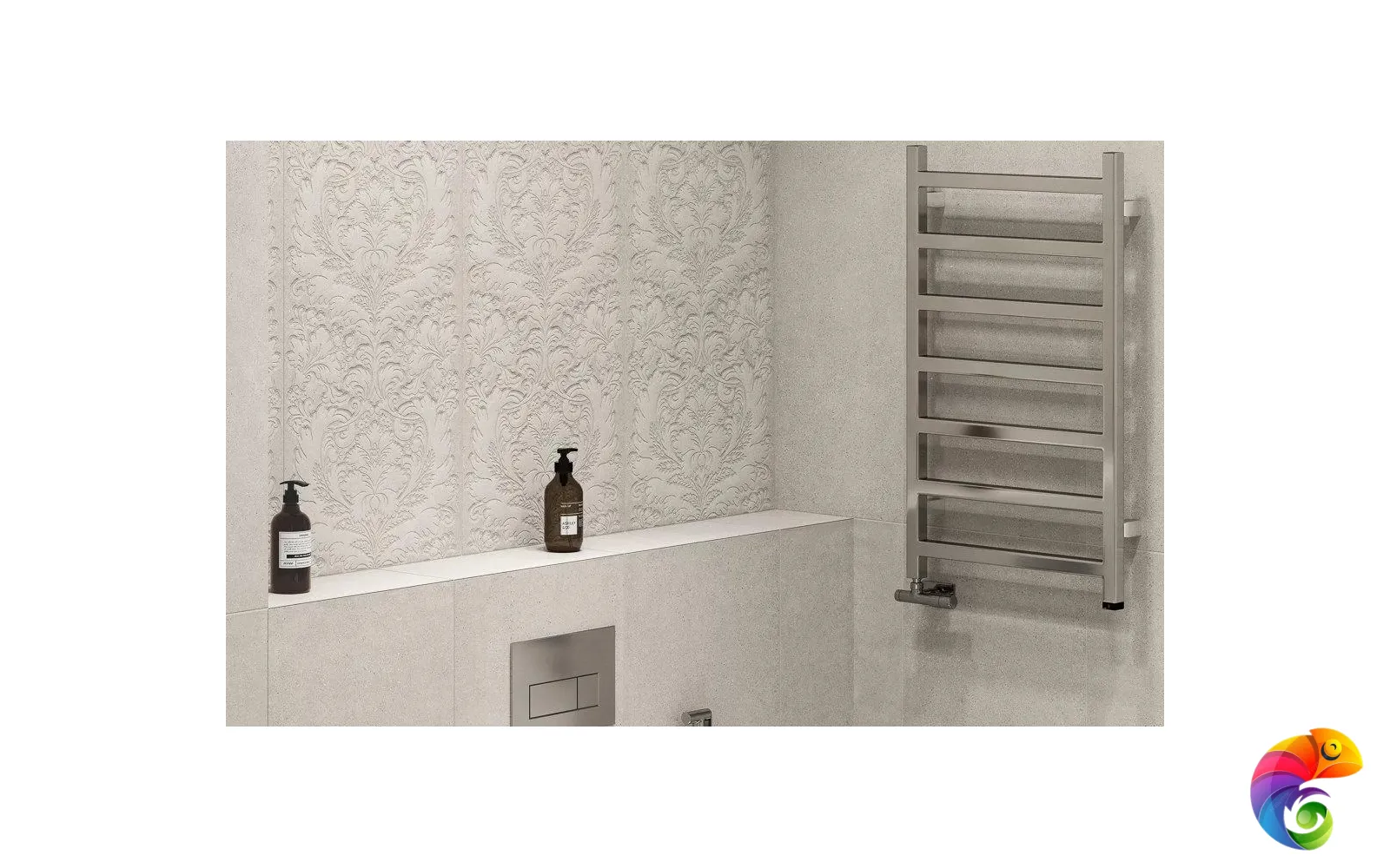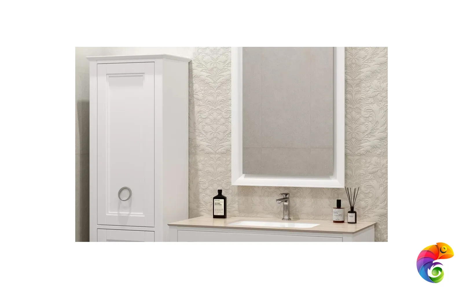 Серия «Монсеррат» позволяет выполнить зонирование пространства изящно и со вкусом. К примеру, душевную зону или стену за унитазом можно облицевать плиткой под мозаику, а стену над ванной выложить керамической плиткой с узором. Либо декором можно украсить пространство вокруг зеркала — эта область обычно имеет подсветку, и красота рельефа серой или бежевой плитки будет хорошо заметна.