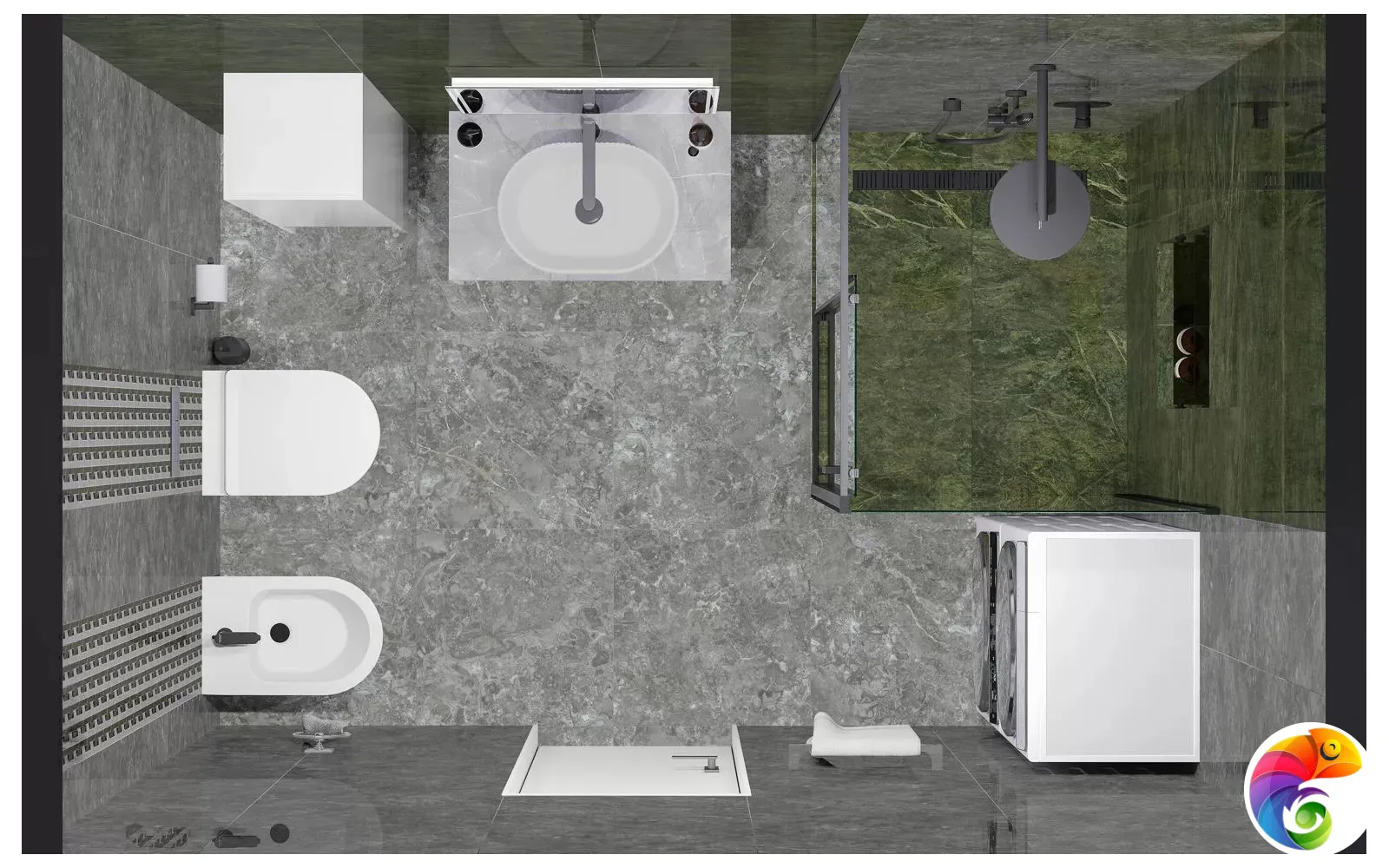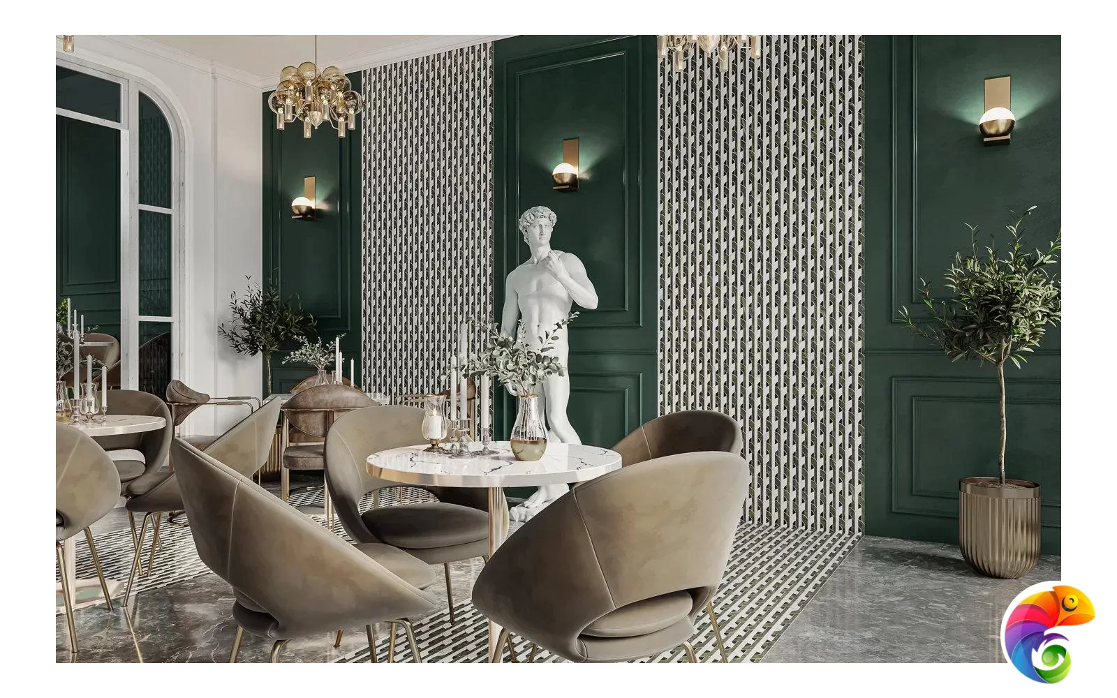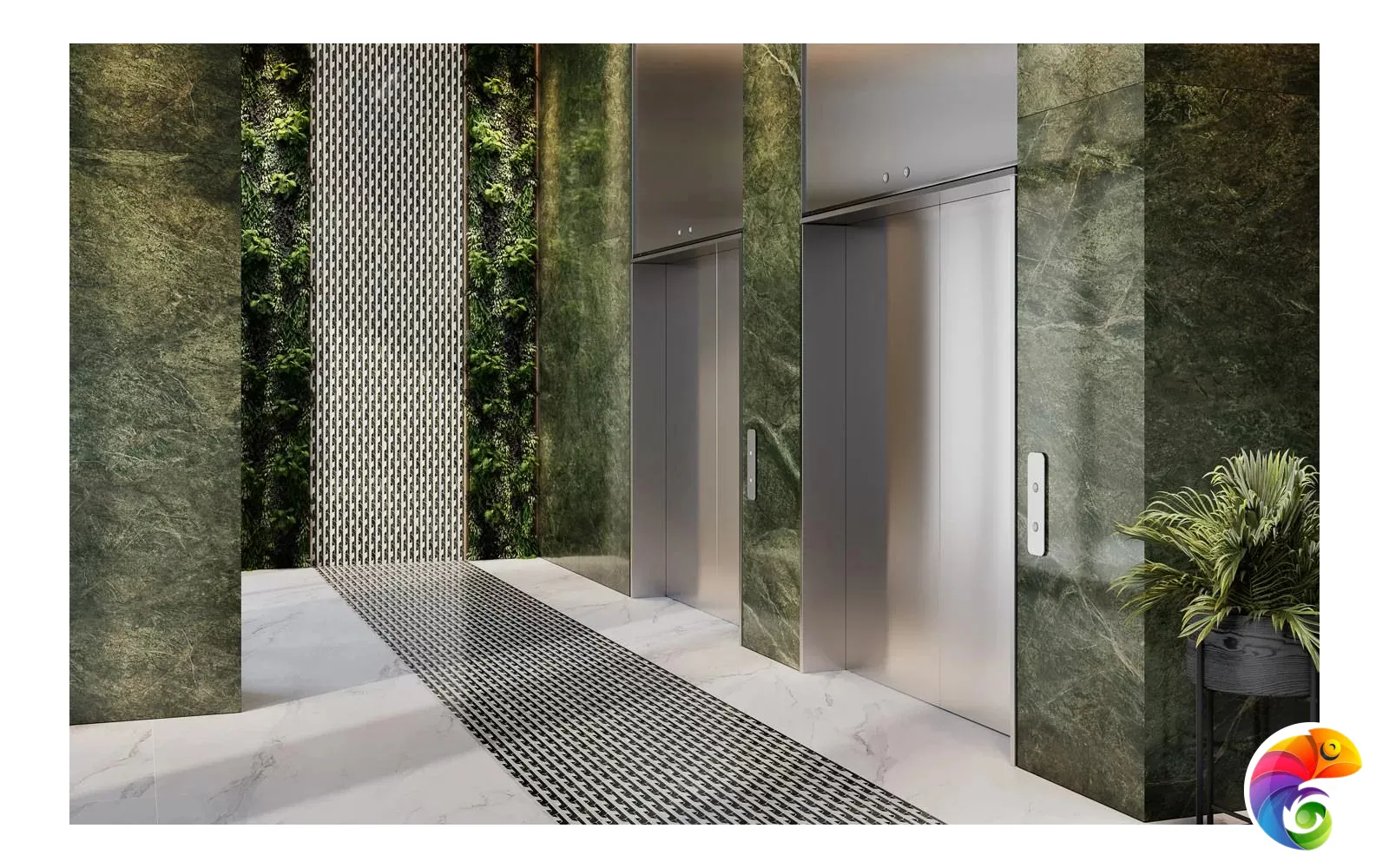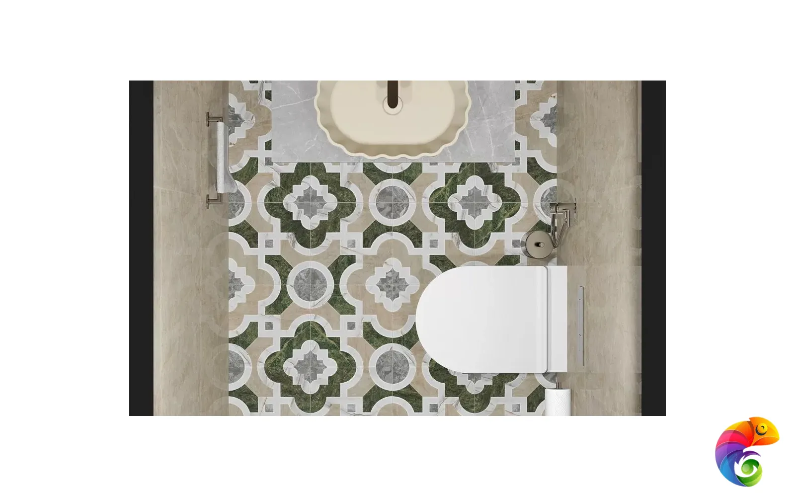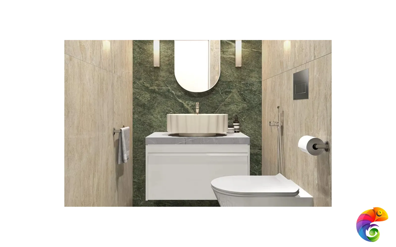 В МАКСИ-формате 119,5×238,5 представлен зелёный декор из двух панелей, образующих симметричную раскладку. Такую специалисты называют «бабочкой»: в случае натурального материала получить подходящие мраморные слэбы для подобного узора — большая удача, а с керамогранитом добиться впечатляющего результата можно в 100% случаев.