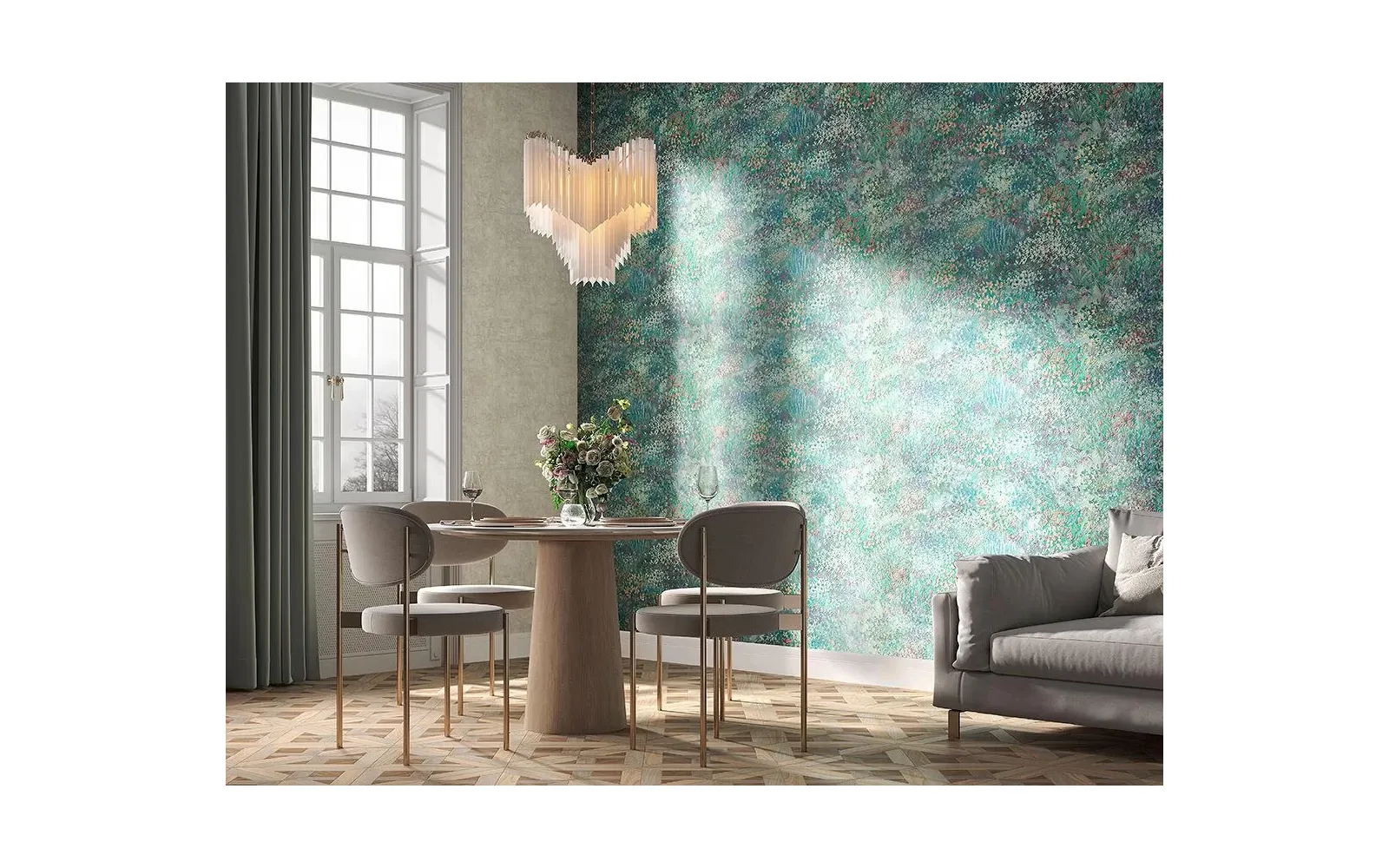 Графика первого мотива содержит множество мелких цветов — они выполнены с деликатным эффектом акварели и поддержаны тиснением. Из вариаций с различной насыщенностью графики можно выбрать ту, которая покажется оптимальной для вашей обстановки. Актуальный принт будет смотреться свежо в любом помещении, от детской до гостиной.