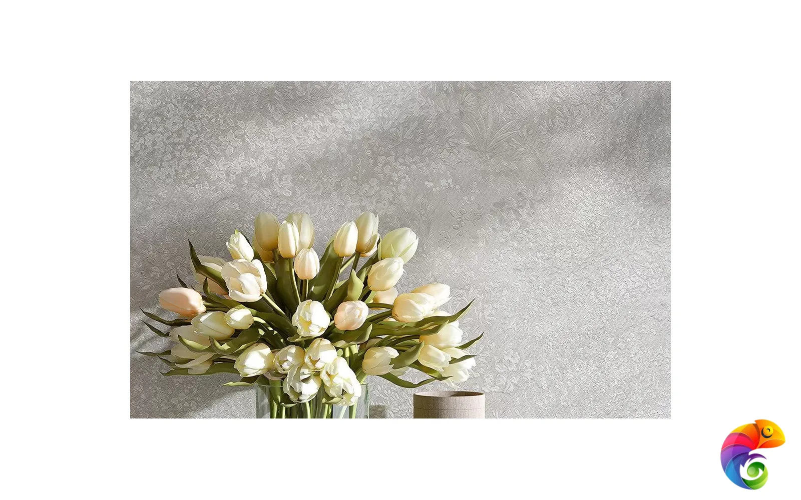 Базовые обои в серии «Апрель» воспроизводят эффект шпатлевки и в чём-то напоминают загрунтованный холст, ожидающий первых прикосновений кисти мастера. Использовать базу можно отдельно от мотивов или оттенять простой структурой красоту тосканских первоцветов.