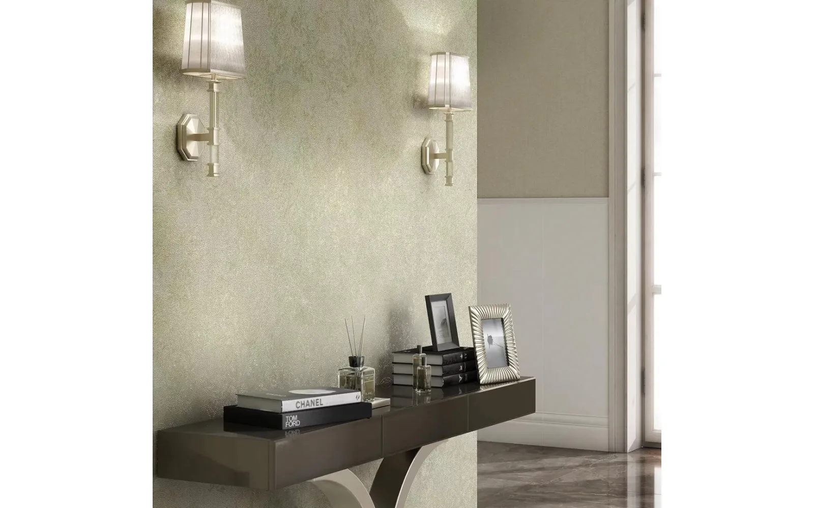 Декоративное напыление золотом и серебром придаёт обоям блеск, привносит интересную игру света.