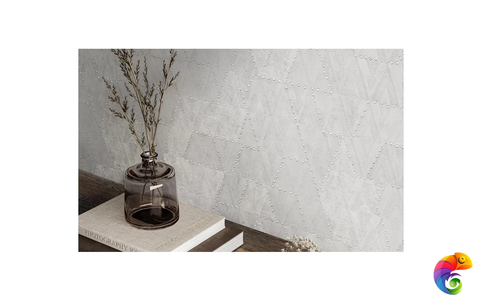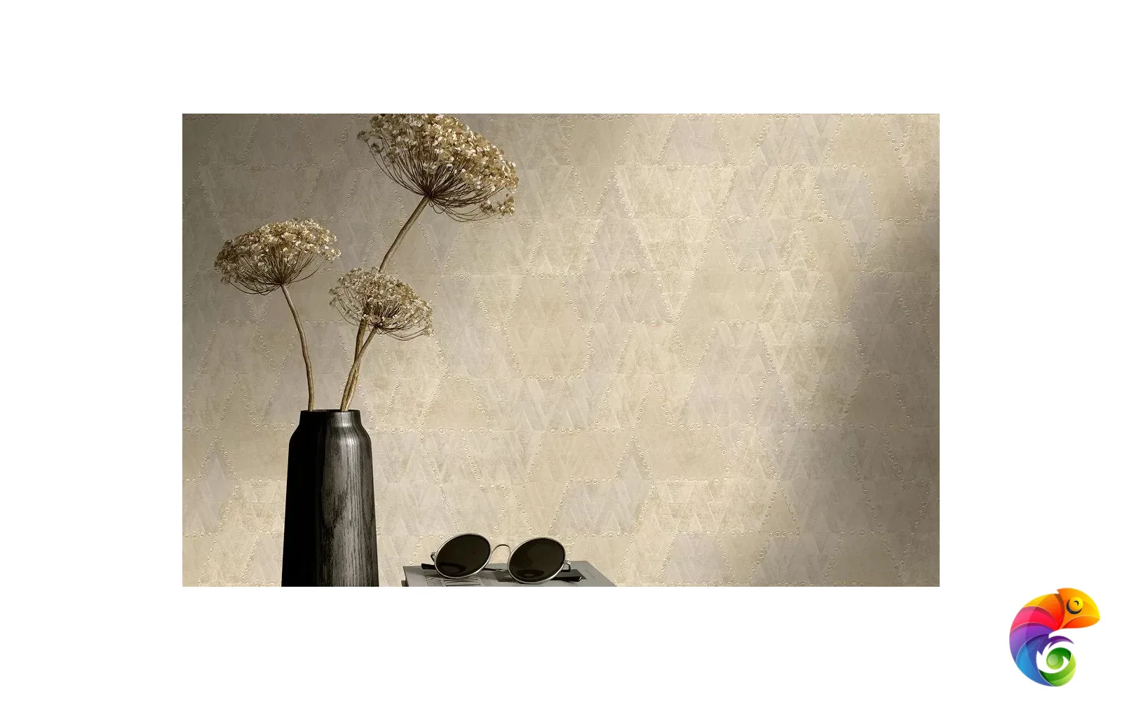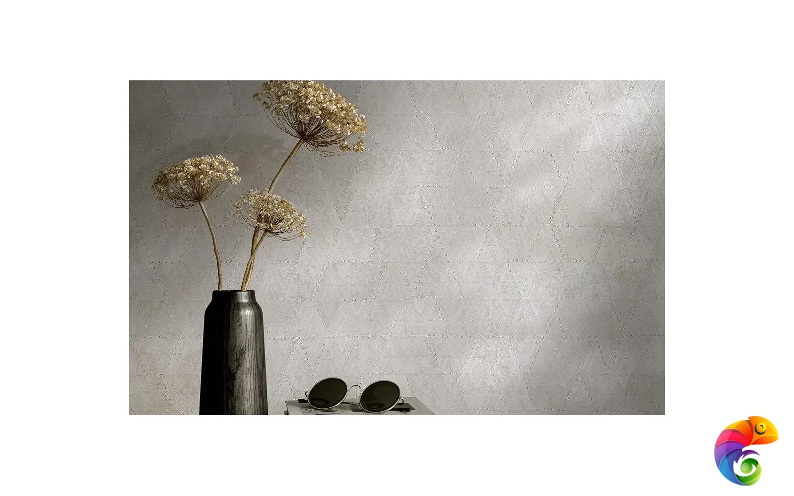 Эффект металлического блеска достигнут за счёт применения перламутра на более светлых рулонах и золота — на мотивах с более глубоким цветом. Тиснение придаёт покрытию объём и делает стильный геометрический рисунок по-настоящему выразительным.