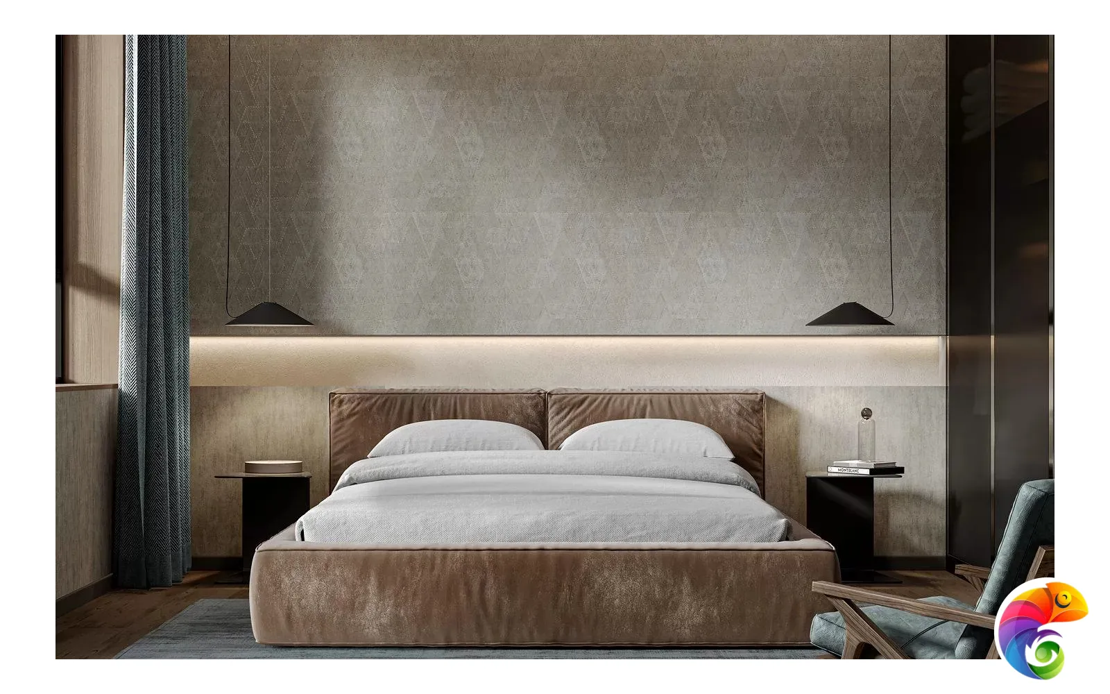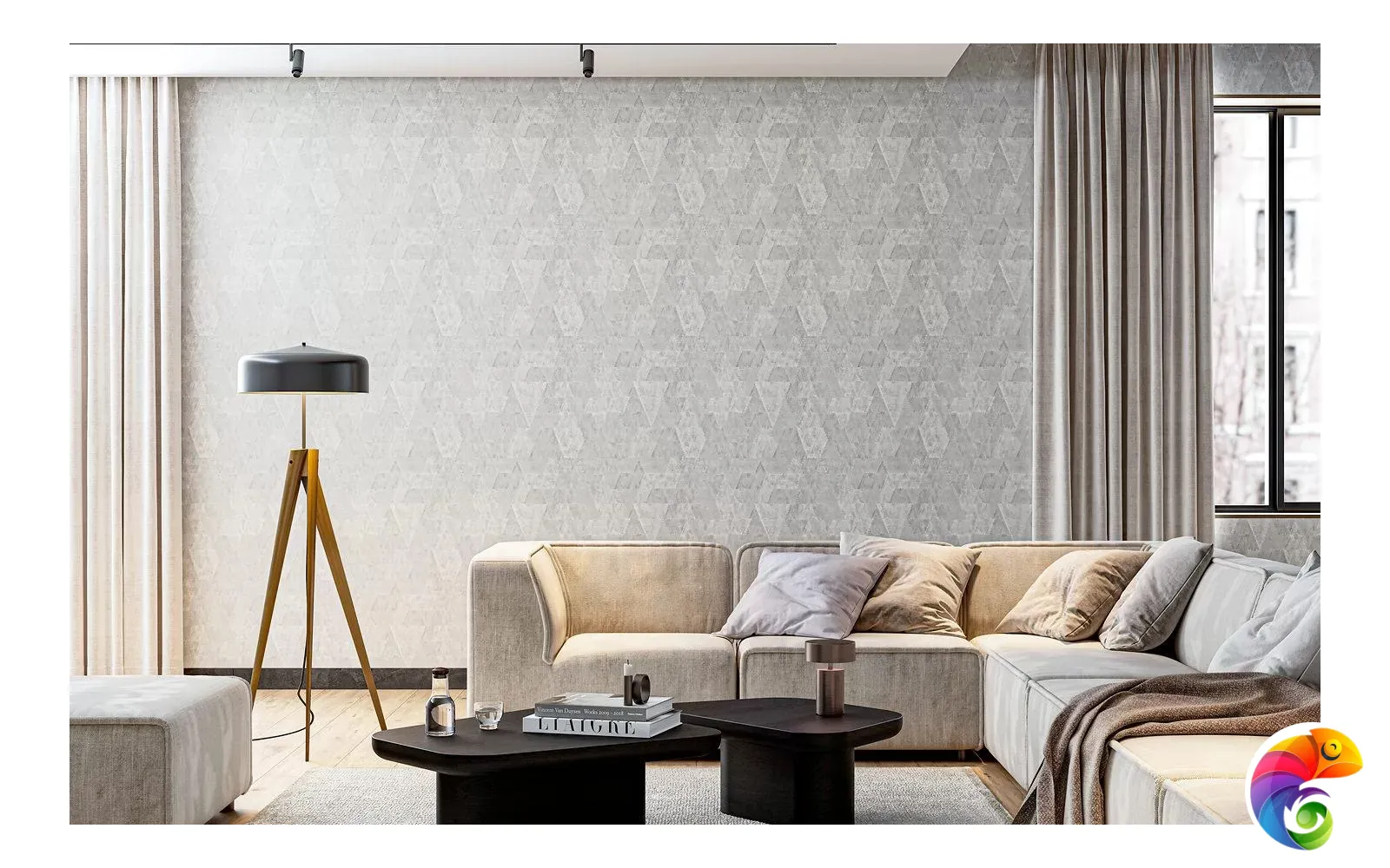 Помимо пяти мотивов, в серии представлены и фоновые обои — они воспроизводят уютный текстиль с эффектом сдержанного блеска. Мягкость линий фоновых обоев отлично дополняет геометрическую строгость мотивов: такой «дуэт» отлично сработает в гостиной или спальне, где одновременно важно выдержать стиль и обеспечить комфорт.
