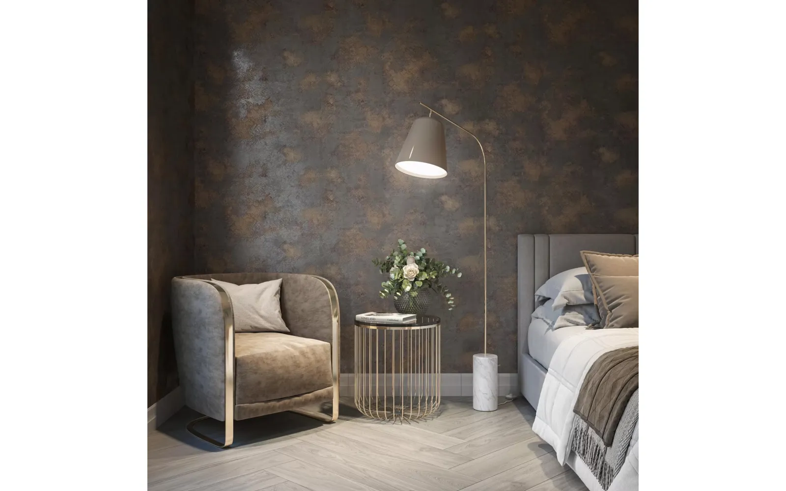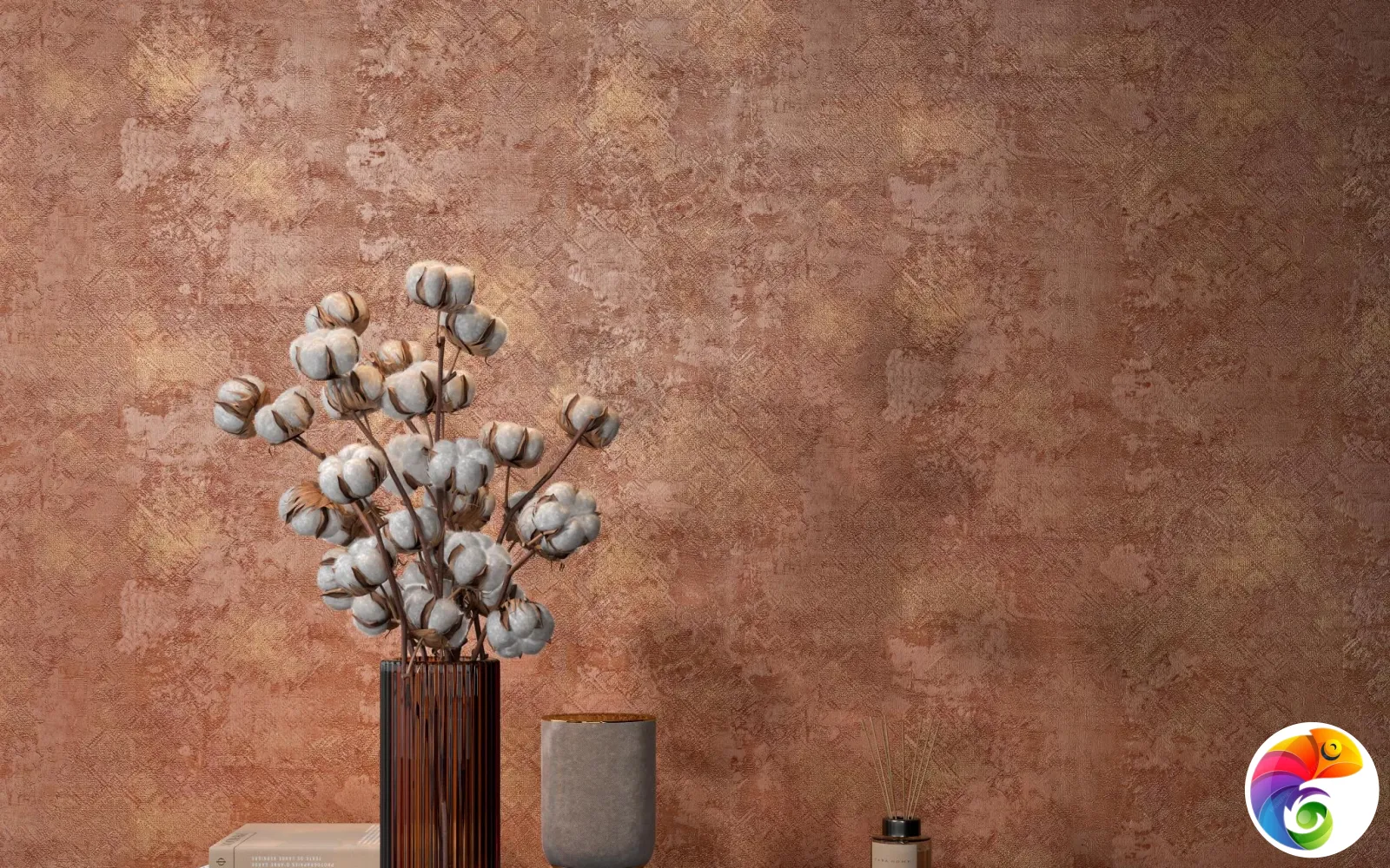 Помимо нескольких светлых цветов, в мотивах «Ренессанс» предложены два насыщенных артикула: коричневый и терракотовый. Терракота (от итал. terra cotta — «обожженная глина») очень характерна для культуры Италии и отлично передаёт её яркий средиземноморский колорит. В таком исполнении обои могут стать визуальным акцентом в обстановке гостиной, спальни или прихожей. Коричневый цвет передаёт эстетику стиля лофт с металлизированным эффектом.