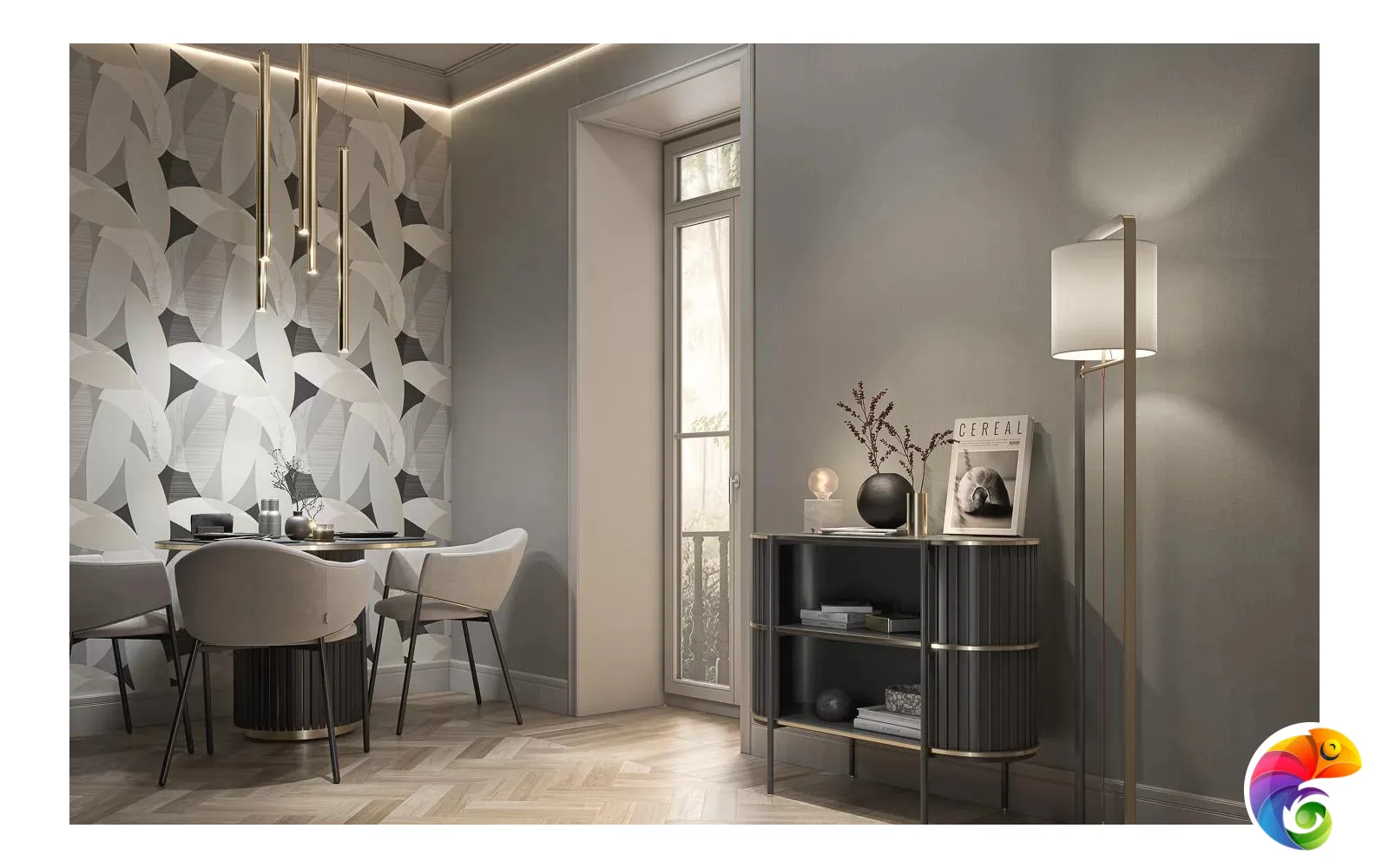 Среди рисунков, представленных в серии, есть геометрическая абстракция в стилистике Пикассо, стилизованные красочные листья, а также эффектные композиции с фруктами: апельсинами, гранатами и яблоками. В серии предложены не только артикулы с контрастными насыщенными цветами, но и решения в спокойной пастельной гамме, подходящие для оклейки больших помещений.